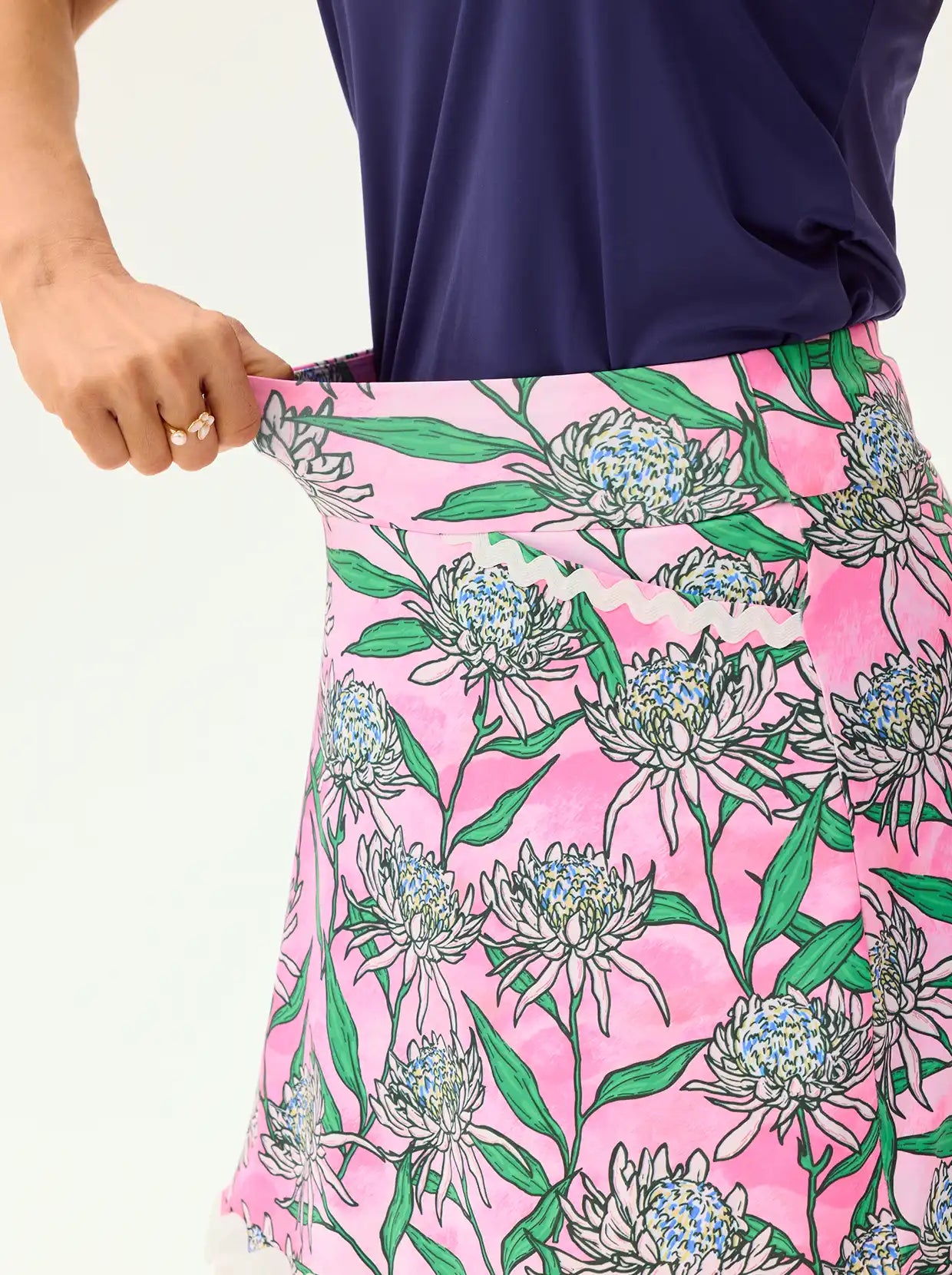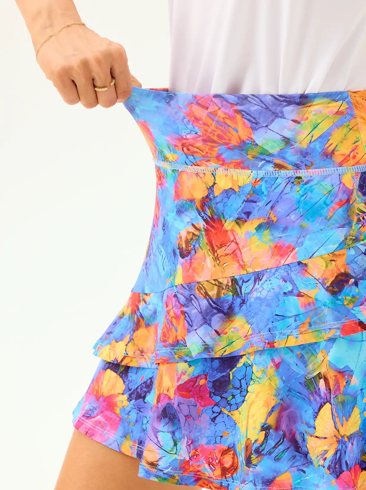 The lightweight fabric, soft ruffles, and floral print add a joyful vibe to every move 🌸