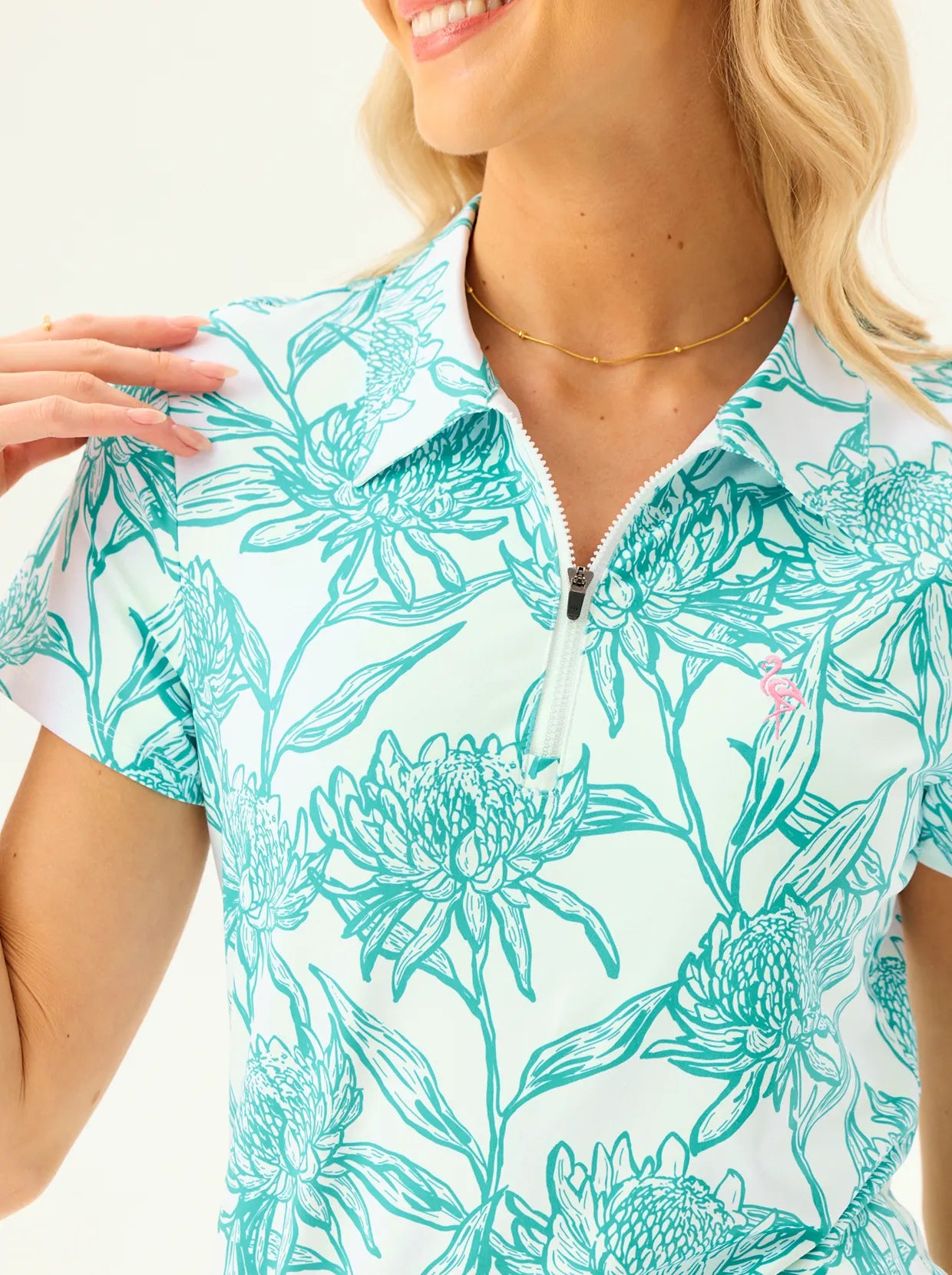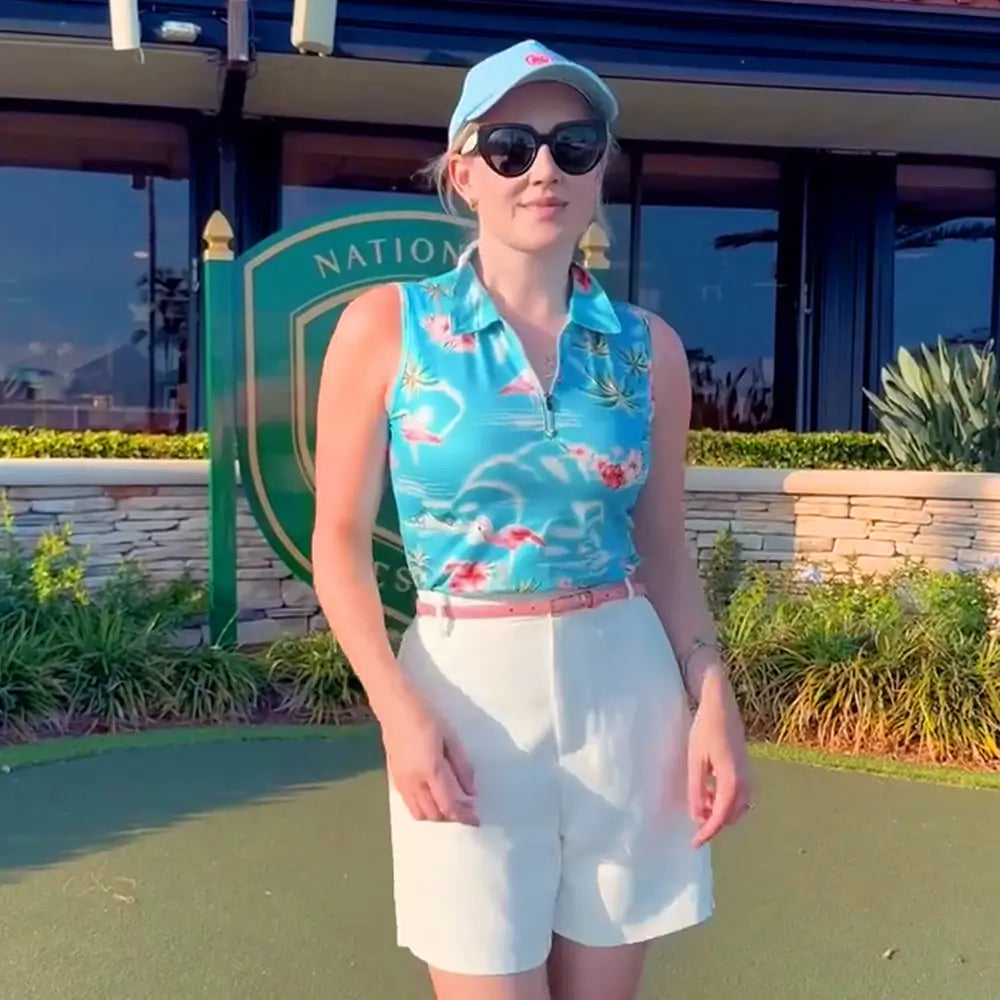 The fit and material was comfortable for a hot and humid day on the golf course. The pink color pops and is perfect for summer. Would definitely get this in the blue too — it’s perfect.