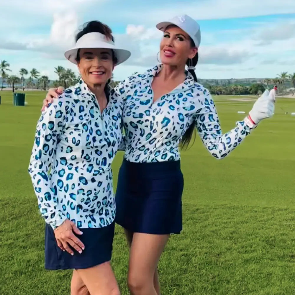 Love this polo! The leopard print and racerback style are adorable, and the fabric is breathable, stretchy, and lightweight — perfect for golf or tennis. Stylish, comfy, and functional all in one!