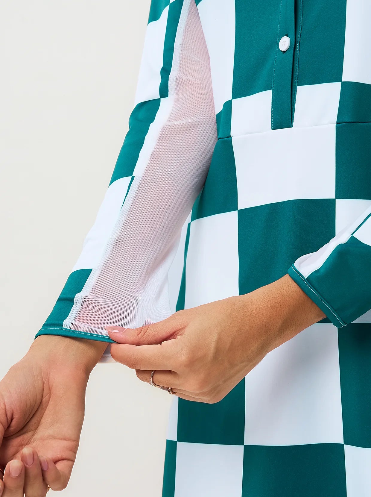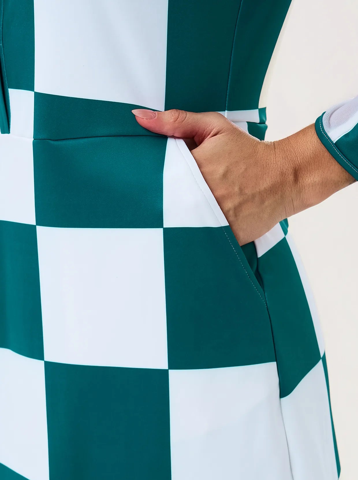 30 reviews34" Pink Houndstooth Quarter-zip Sleeveless Dress For Women