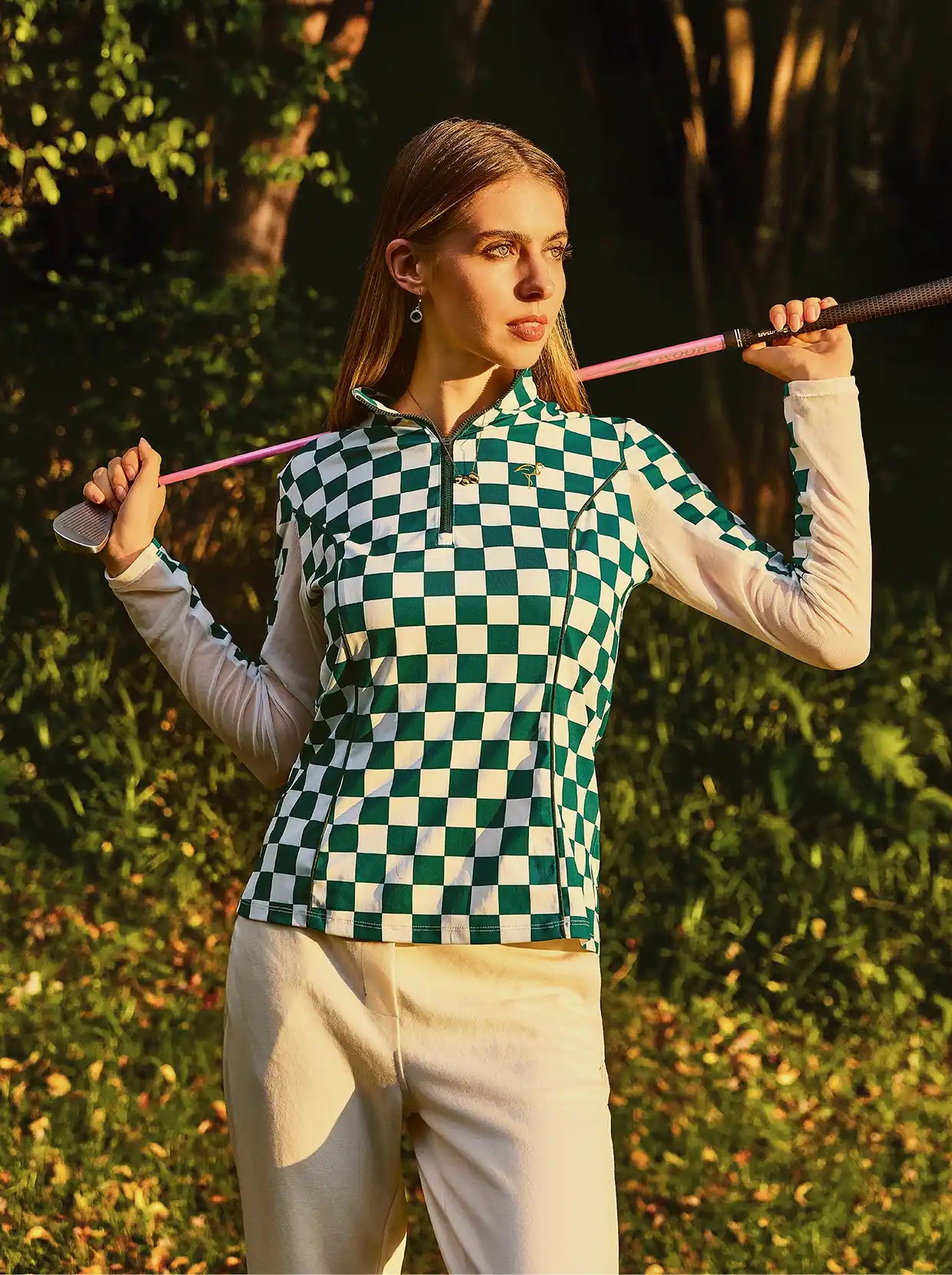 42 reviewsPink and Blue Checkerboard Quarter-zip Sleeveless Polo Shirts For Women
