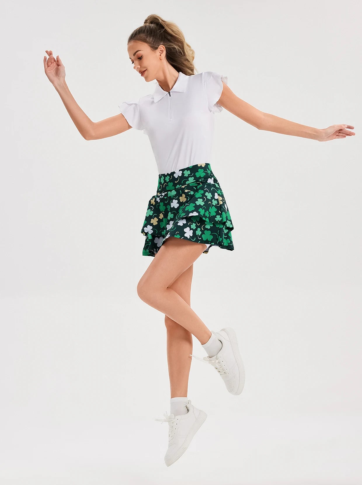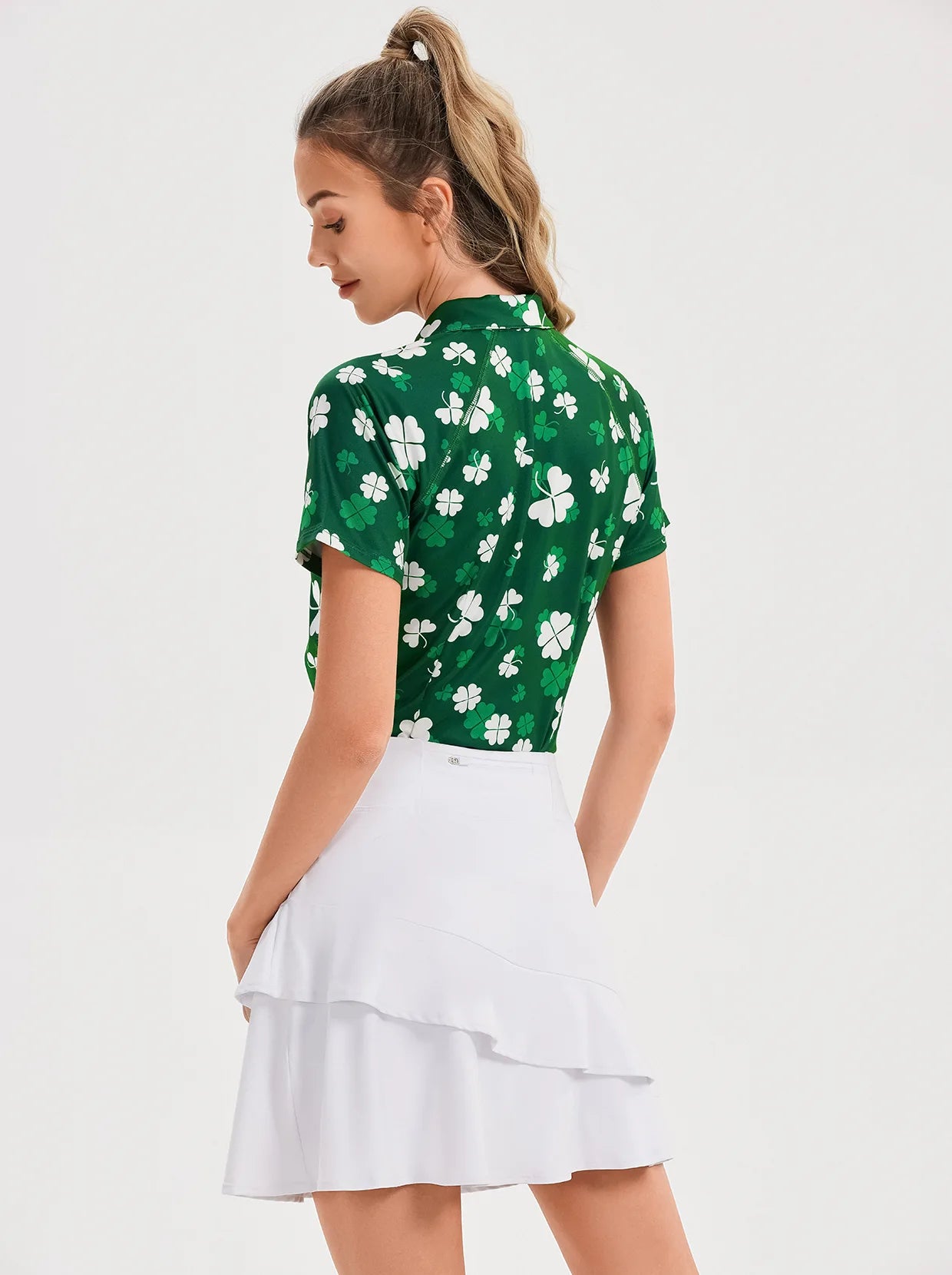1 reviewGreen Shamrock Ruffled Sleeveless Polo Shirt For Women