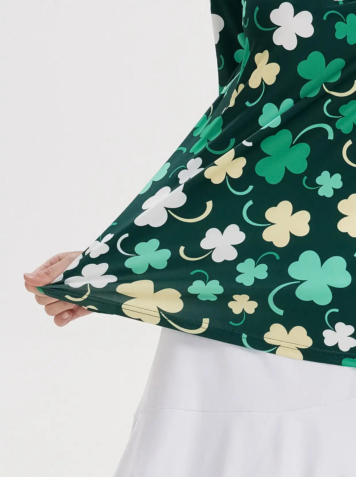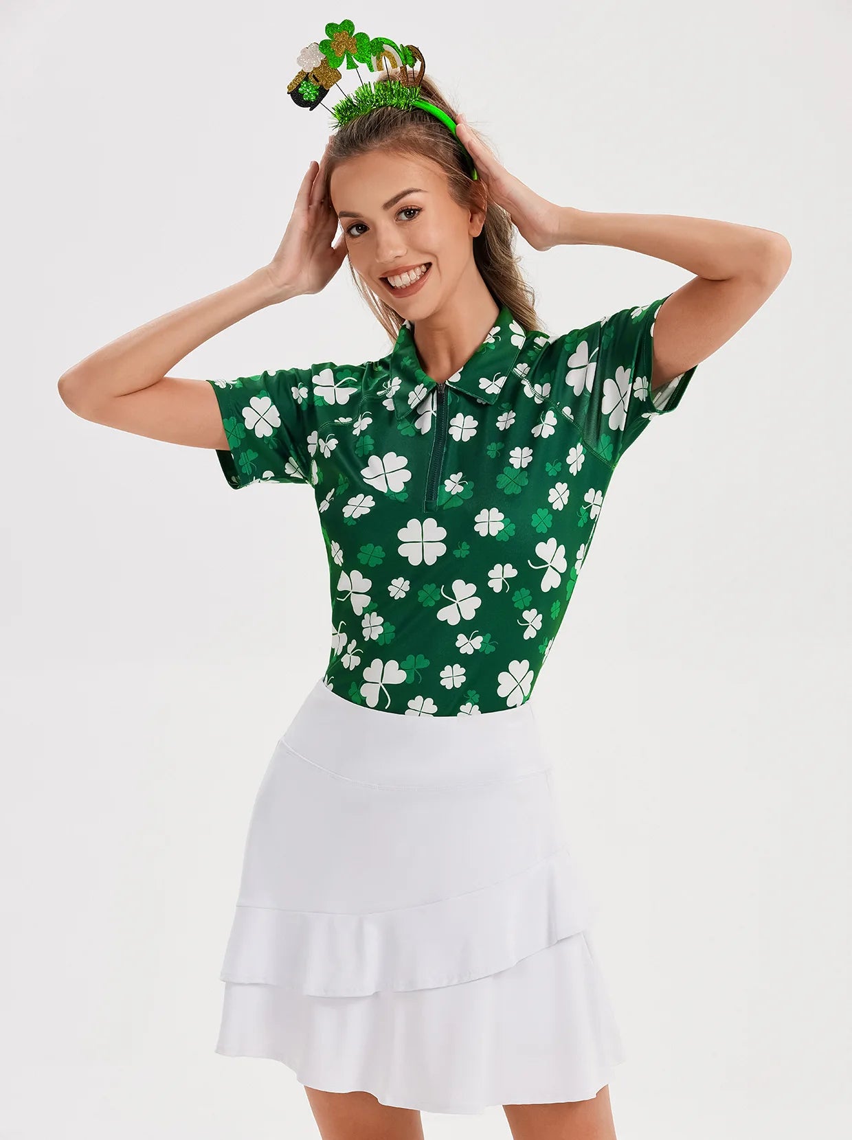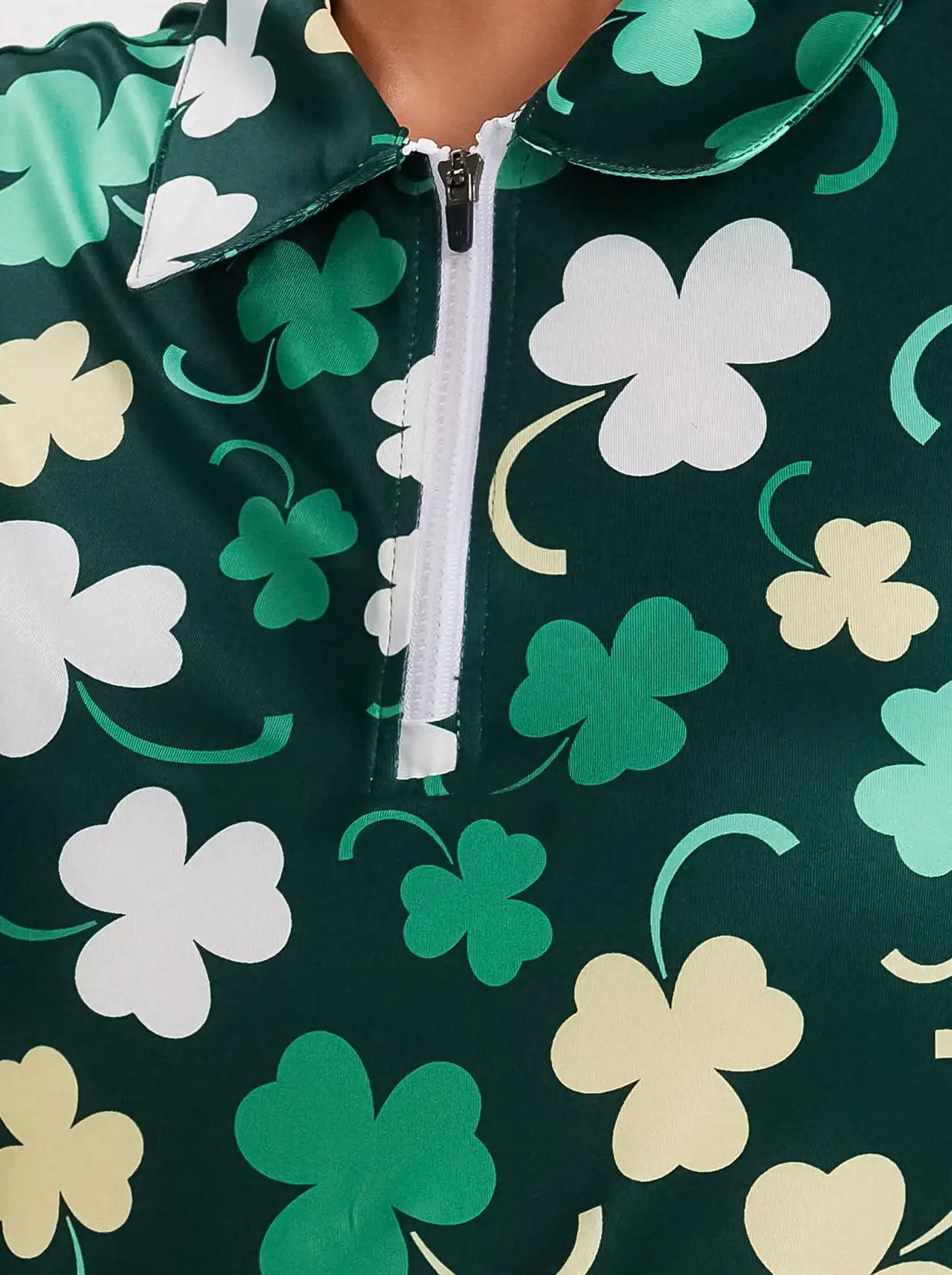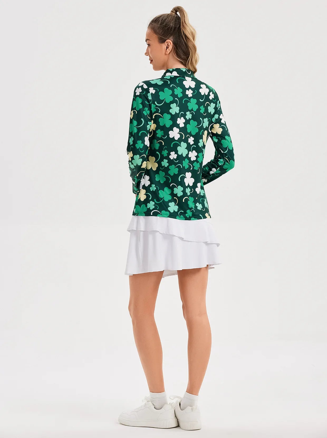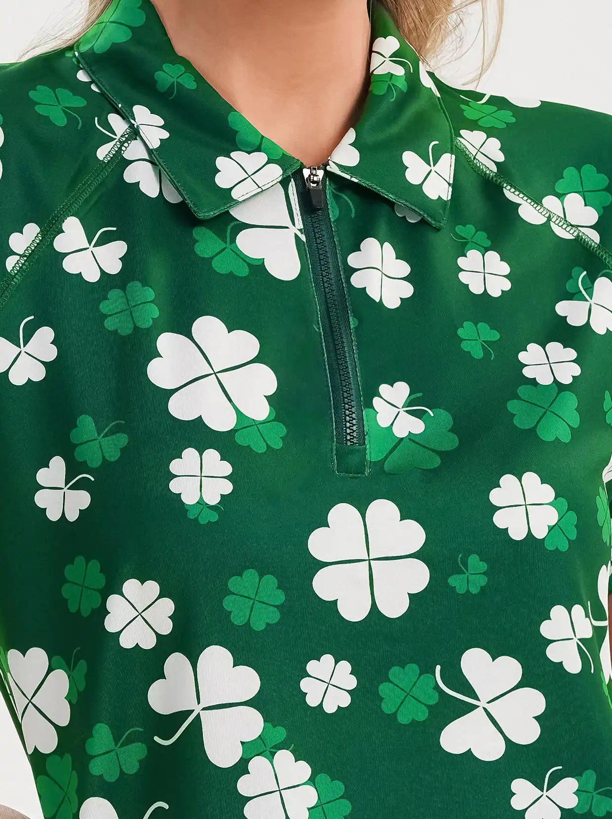 Green Shamrock Quarter-zip Long-sleeve Polo Shirt for Ladies