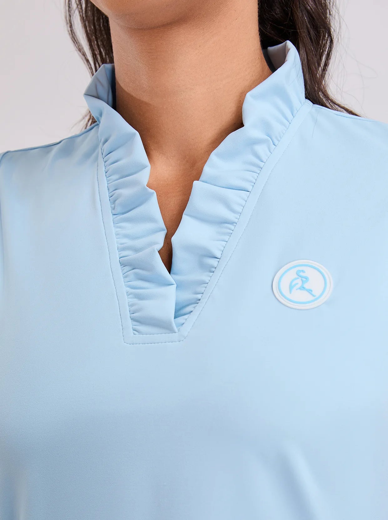 4 reviewsDark Blue Ruffled Quarter-zip Sleeveless Shirt For Ladies