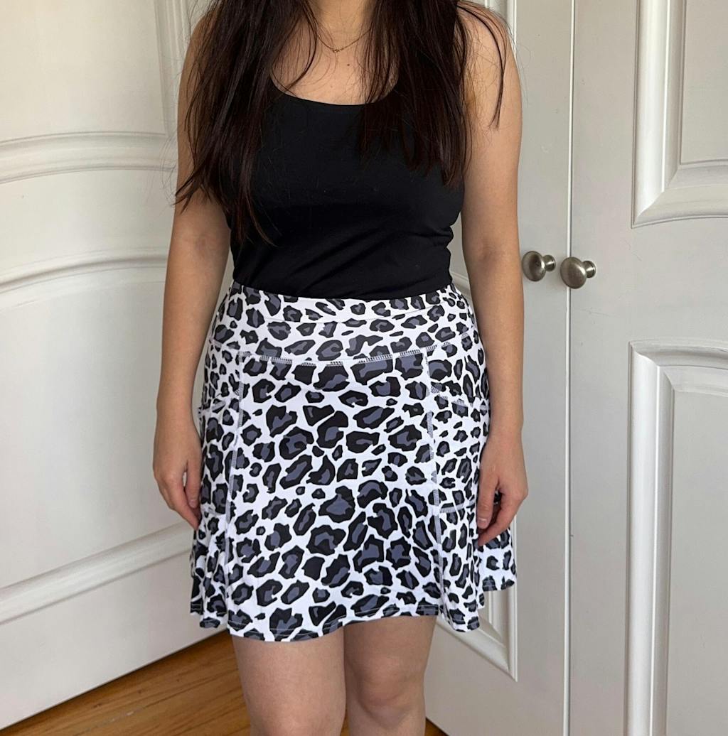 Enjoy all-day comfort and protection from the sun with our UPF50+, leopard pleated skorts. Made with soft and moisture-wicking material, our active skort also offers the convenience of built-in shorts and pockets, perfect for all your favorite activities and casual outings. The leopard pattern adds a touch of personality to this versatile piece.