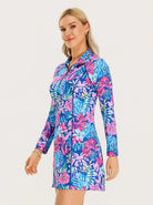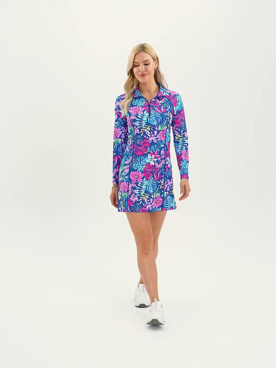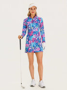 Designed to support your active lifestyle, our women's golf dress combines thoughtful construction with everyday comfort. The stand collar and quarter-zip provide versatile styling options, while raglan sleeves ensure unrestricted movement through every swing and stride. Engineered with 4-way stretch fabric that's soft and breathable, it moves with your body rather than against it.