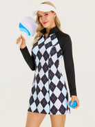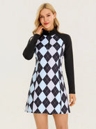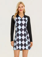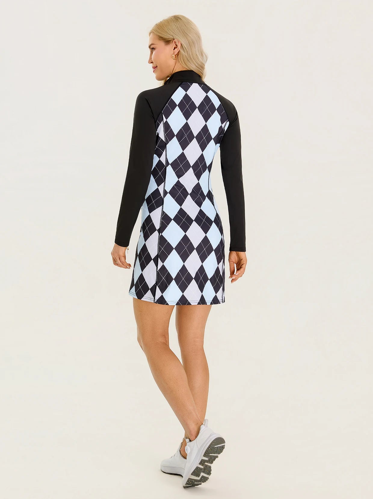 35" Stand-collar Long-sleeve Golf Dresses with Shorts