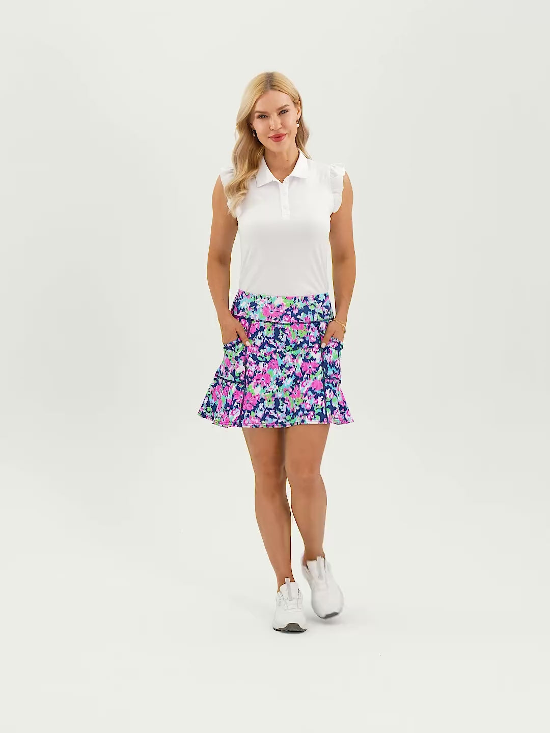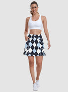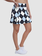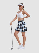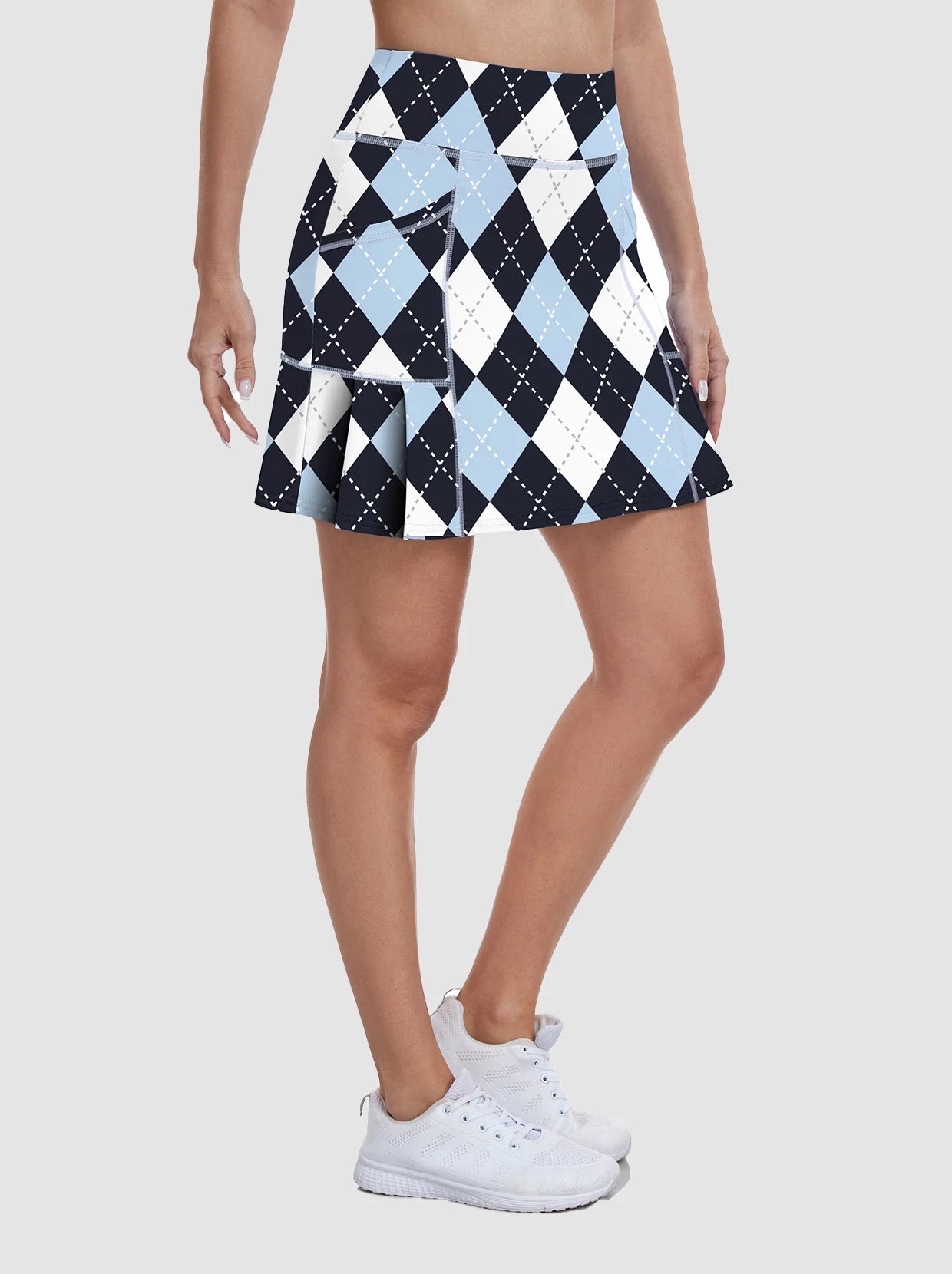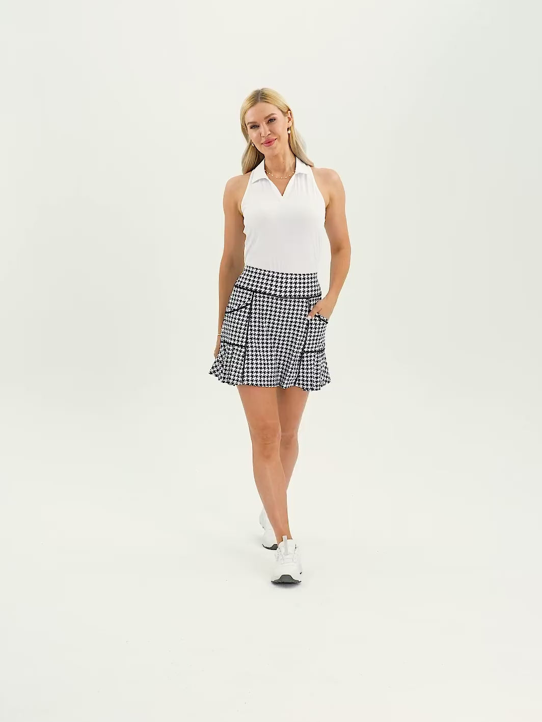 Add some style and convenience to your active wardrobe with our Pleated Skort. Not only does it feature a trendy houndstooth print and built-in shorts, but it also has pockets for storing small essentials. Plus, with its quick dry and moisture-wicking properties, you'll stay dry and comfortable during any activity. And thanks to its soft and stretchy fabric, you'll have a full range of motion.
