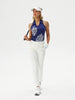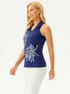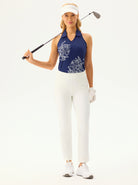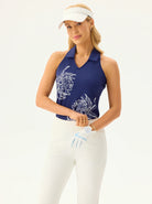 White Floral Racerback V-neck Sleeveless Polo Shirt