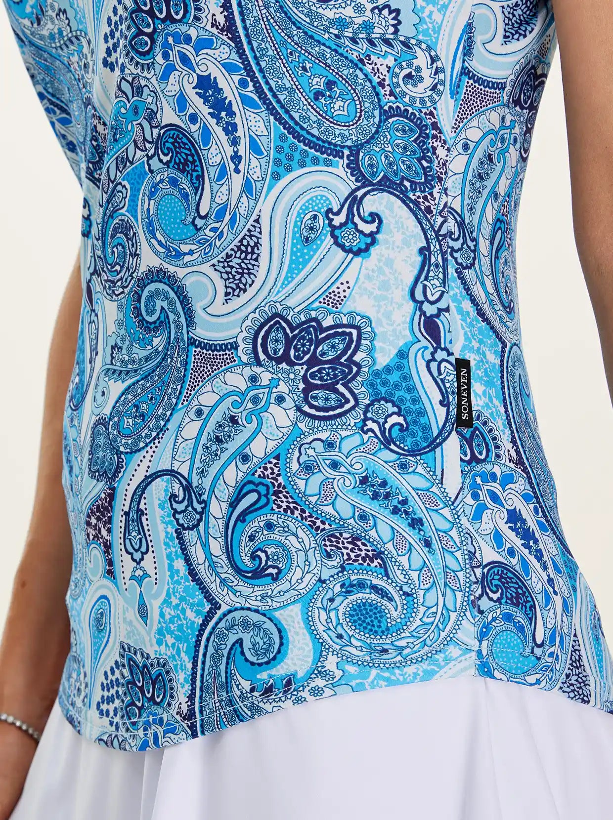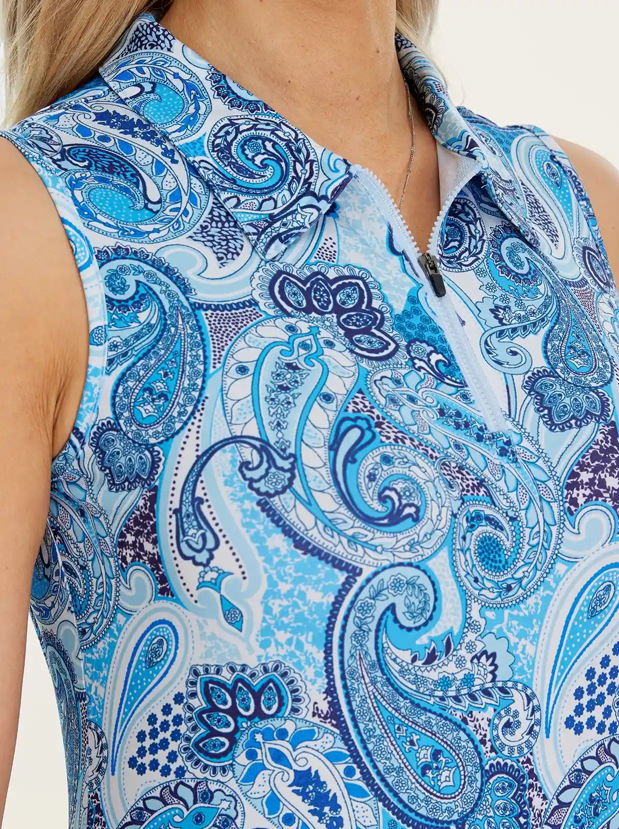 Blue Paisley Quarter-zip Sleeveless Polo Shirt