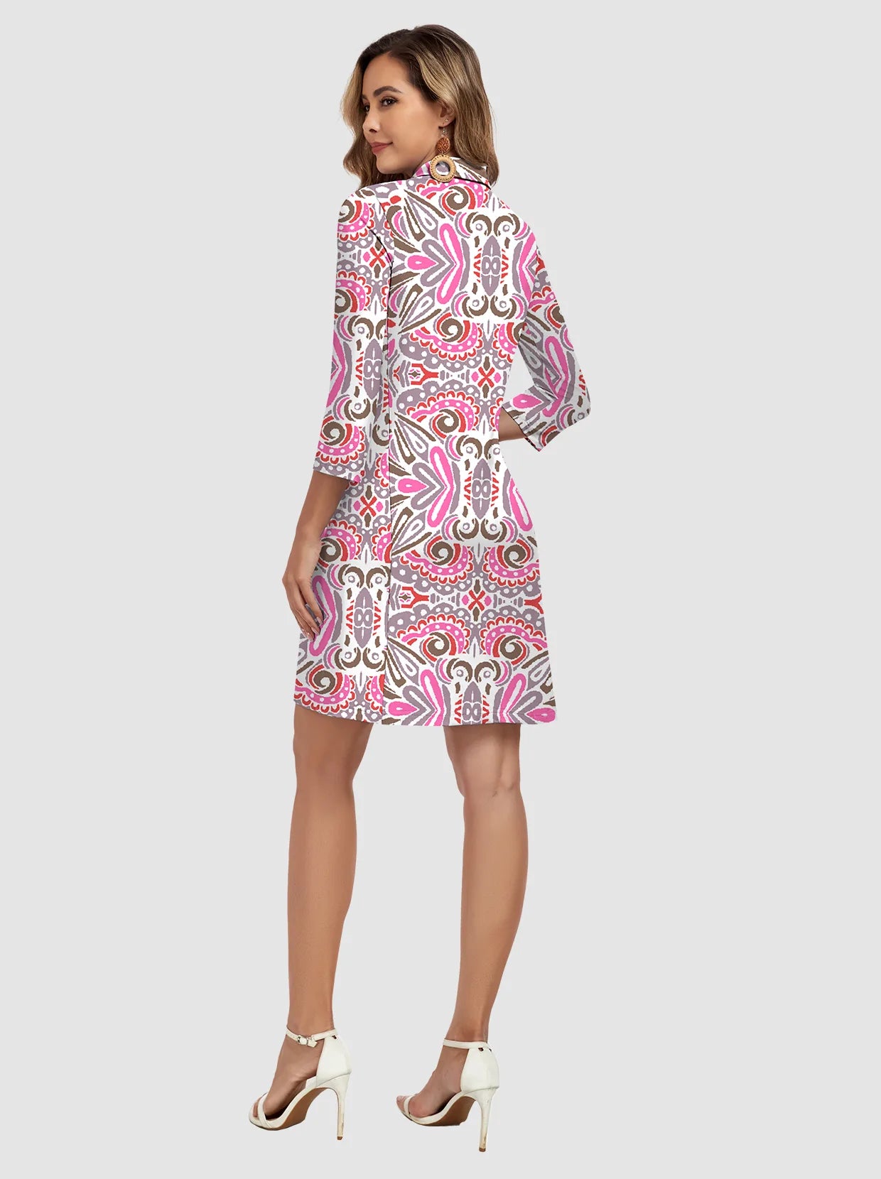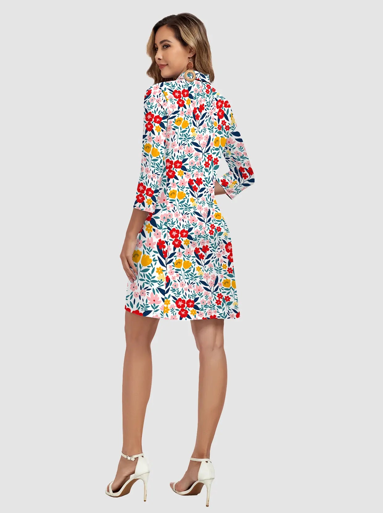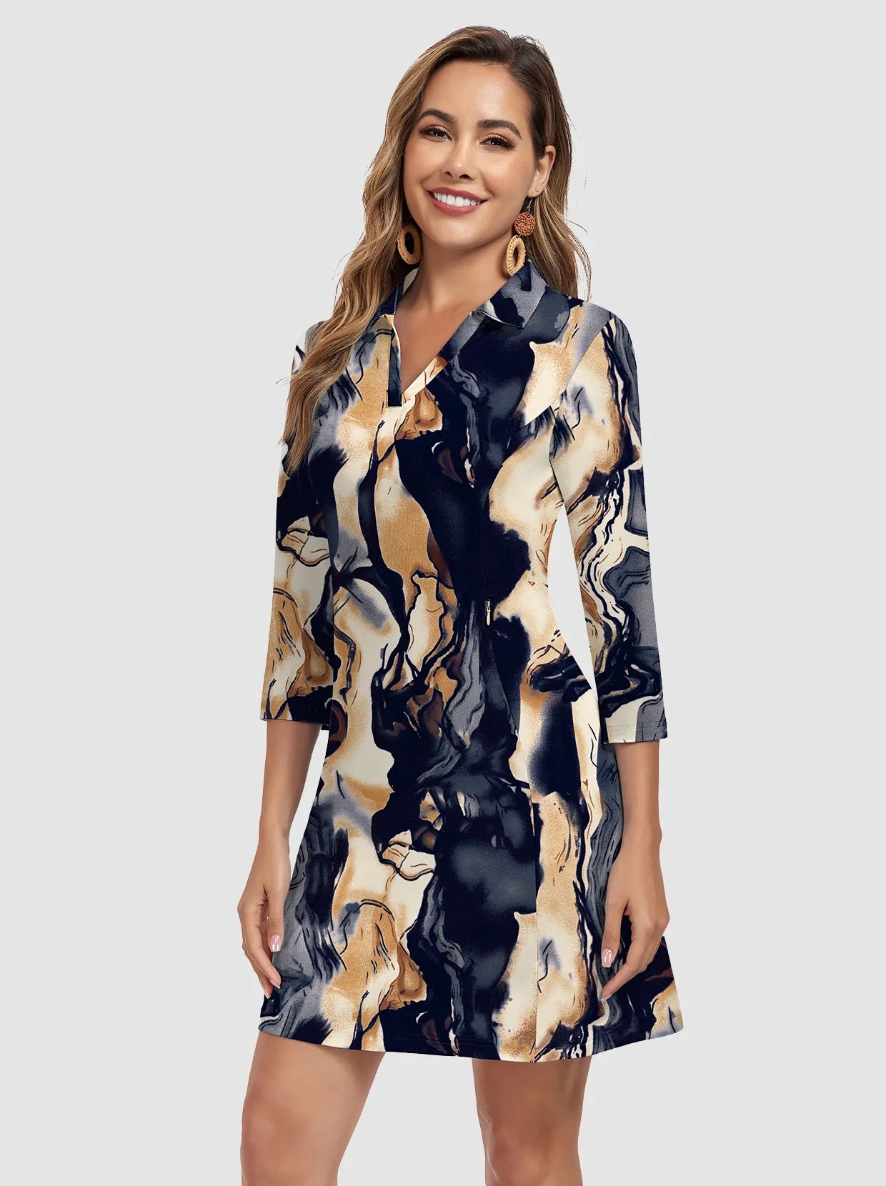 35" V-neck 3/4 Sleeve Polo Dresses with Shorts and Pockets