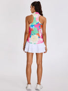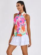 Colorful Floral Racerback Sleeveless Button-down Shirt for Women