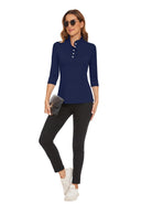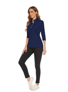 Dark Blue Ruffled-collar 3/4 Sleeve Polo Shirt for Women
