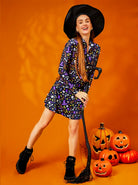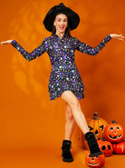Halloween Purple Pattern Quarter-zip Long-sleeve Polo Shirt for Women