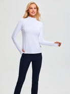Stay warm and comfortable during your runs with this long-sleeve thermal underwear. The soft, fleece-lined fabric provides optimal insulation, while the 4-way stretch and quick-drying material ensure maximum comfort and mobility. The thumb holes extend coverage and keep sleeves in place, while the mock neckline offers extra protection from the cold. The flat-seam construction helps reduce chafing for all-day comfort, making perfect for layering and outdoors.