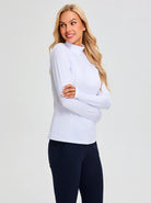 Highlights: UPF50+ (UVA/UVB), streamlined fit, thumb holes, flat-seam construction