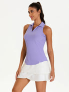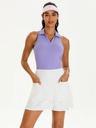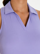 Basic V-neck Racerback Sleeveless Polo Shirt For Women