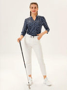 Be bold and fierce with our Black and Grey Leopard Collarless V-neck 3/4 Sleeve Shirt. Embrace your wild side with the statement leopard print and collarless design. Made with 3/4 length sleeves, this shirt adds a touch of sophistication to any outfit. Be the queen of the concrete jungle!