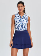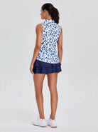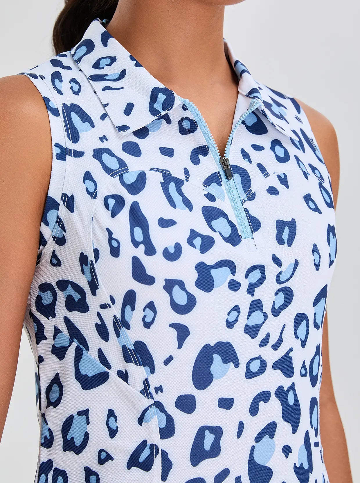 Blue Leopard Quarter-zip Sleeveless Polo Shirt