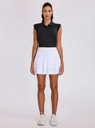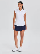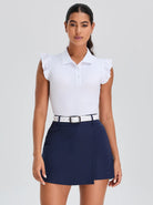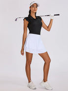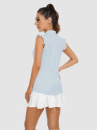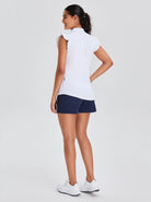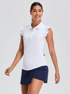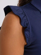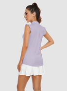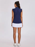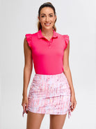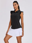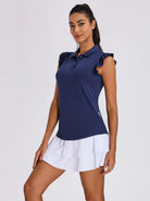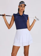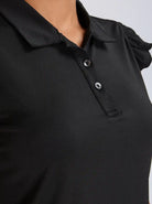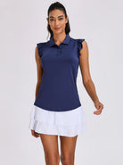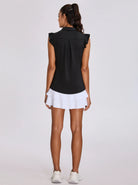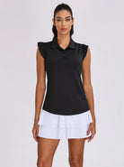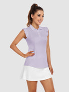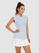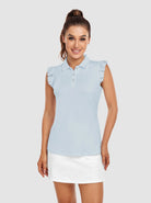 Button-Placket Ruffled Sleeveless Polo Shirt for Women