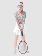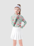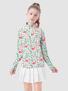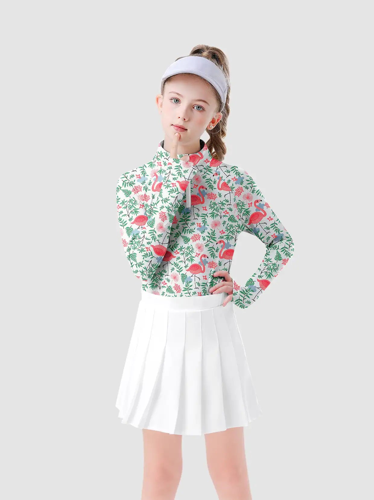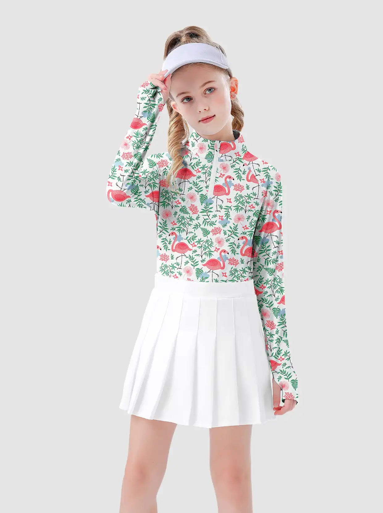 Girls Flamigo Pattern Quarter-zip Long-sleeve Shirt with thumbhole