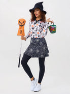 Made from soft, moisture-wicking, breathable fabric, it will keep you cool and comfortable all day long. The 4-way stretch ensures a perfect fit and freedom of movement, so you can dance and celebrate without any restrictions. The playful pumpkin and cat design is perfect for Halloween parties or everyday wear.