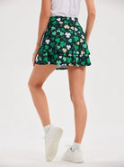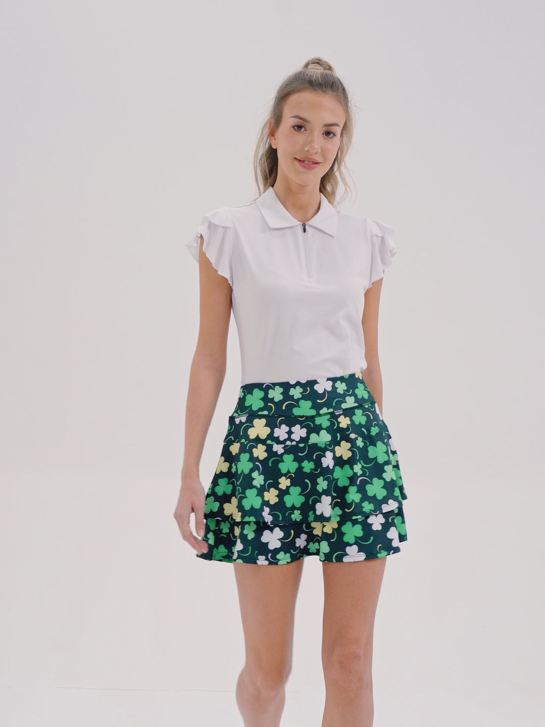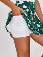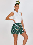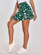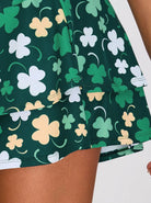 Make a statement this St. Patrick's Day with our Green Clover 17" Double Layer Active Skort for Women. Keep your essentials within reach with the inner shorts pocket and enjoy optimal comfort thanks to the built-in shorts and flat-wide waistband. Perfect for any active occasion, this skort comes in a fun green, yellow, and white clover print that will make you stand out in style.