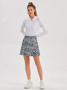 Ladies 17" Black Leopard Pleated Skort with Shorts and Pockets