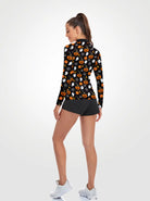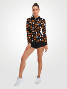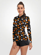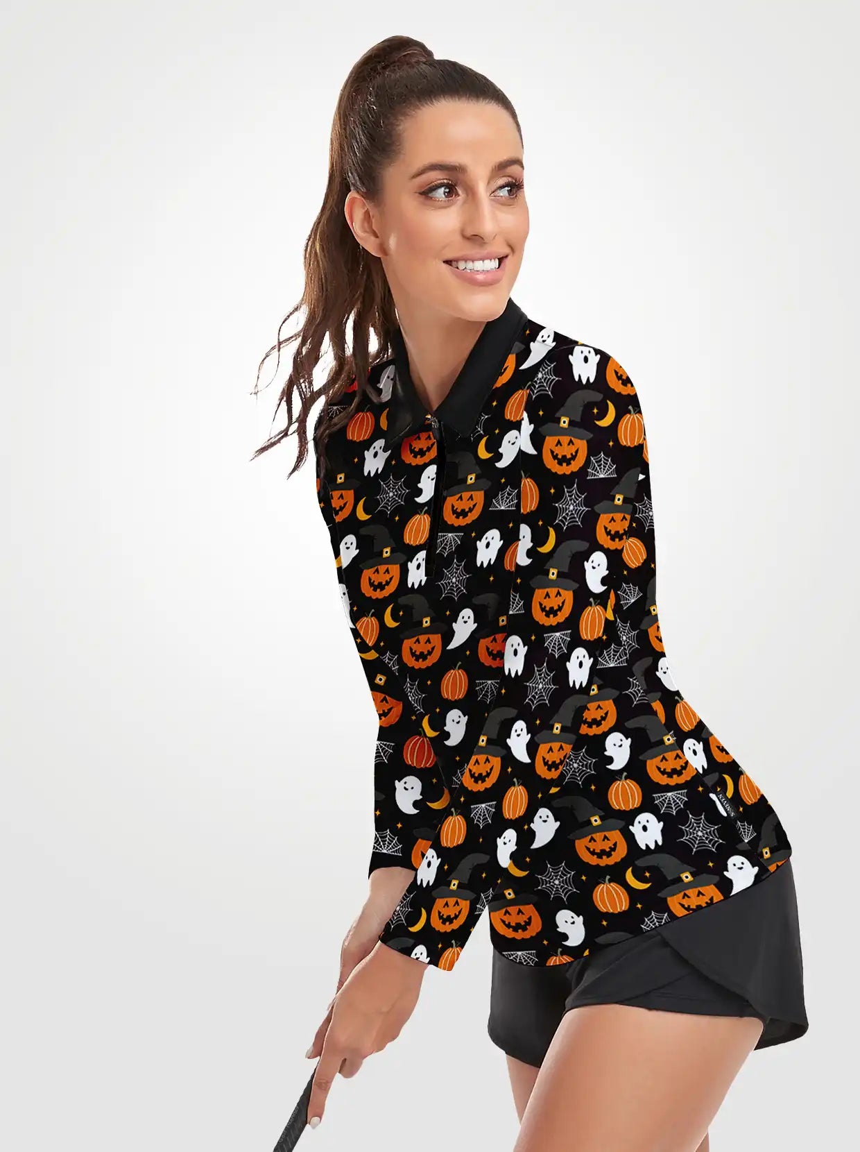 Halloween Pumpkin and Ghost Quarter-zip Long-sleeve Polo Shirt for Women
