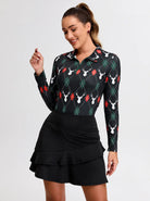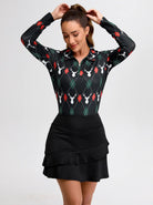 Christmas Reindeer Pattern Long-sleeve Polo Shirt for Ladies