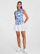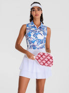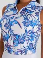 Blue Floral Sleeveless Athletic Polo Shirts For Ladies