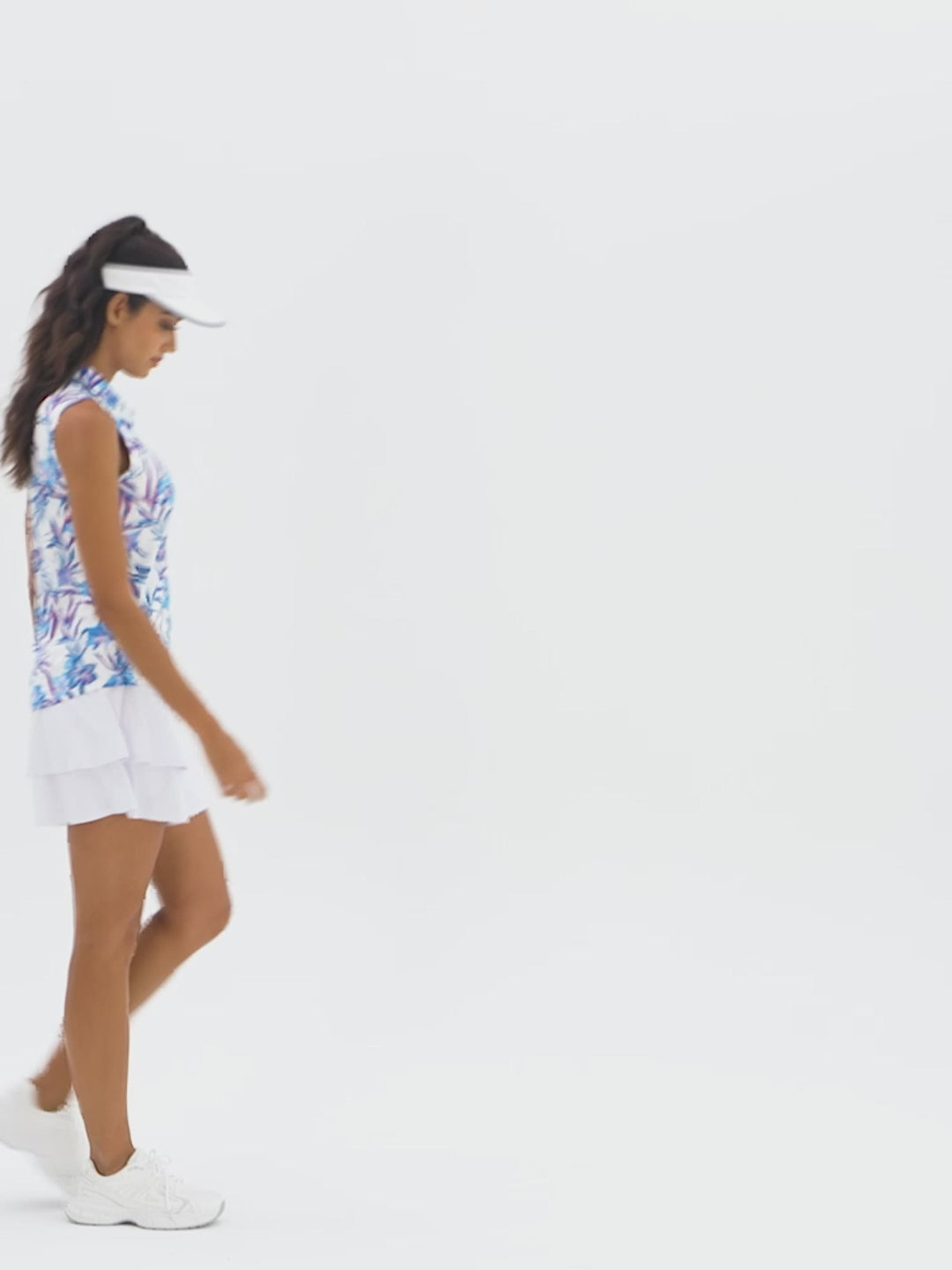 Versatile and stylish, our Blue Floral Short-Sleeve Golf Shirt is perfect for any occasion. Crafted from a soft, breathable fabric, this blue floral polo features a moisture-wicking finish. Stay fresh all day long with our anti-odor technology. The delicate floral pattern and classic collar make it a versatile addition to your wardrobe. Pair it with your cute skort and golf shorts to complete an energetic look.