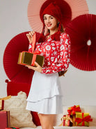 Get into the festive spirit with our Christmas print long-sleeve polo shirt. Made from soft, stretchy fabric, this top is designed to fit perfectly and keep you comfortable. The quick-drying material keeps you comfortable and refreshed. The classic polo design with a festive Christmas print is the perfect way to spread holiday cheer.