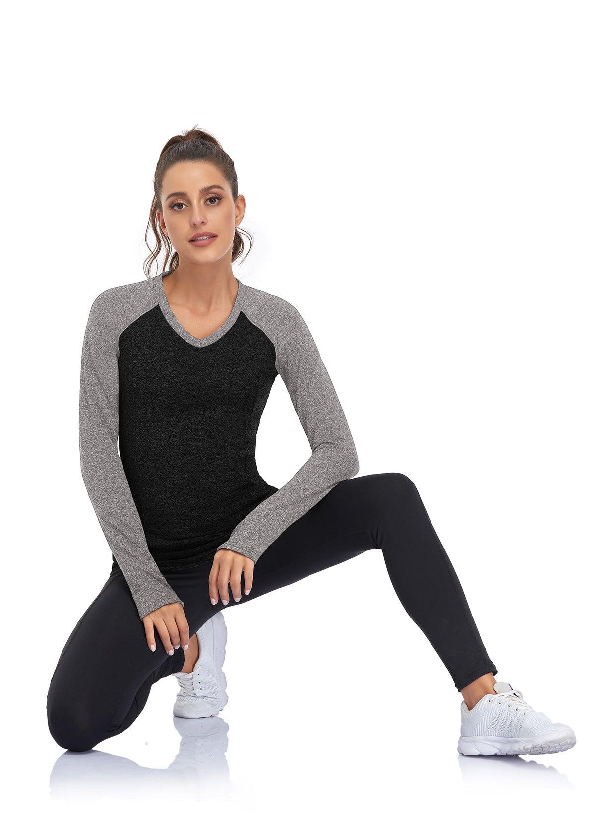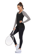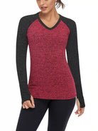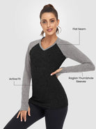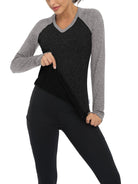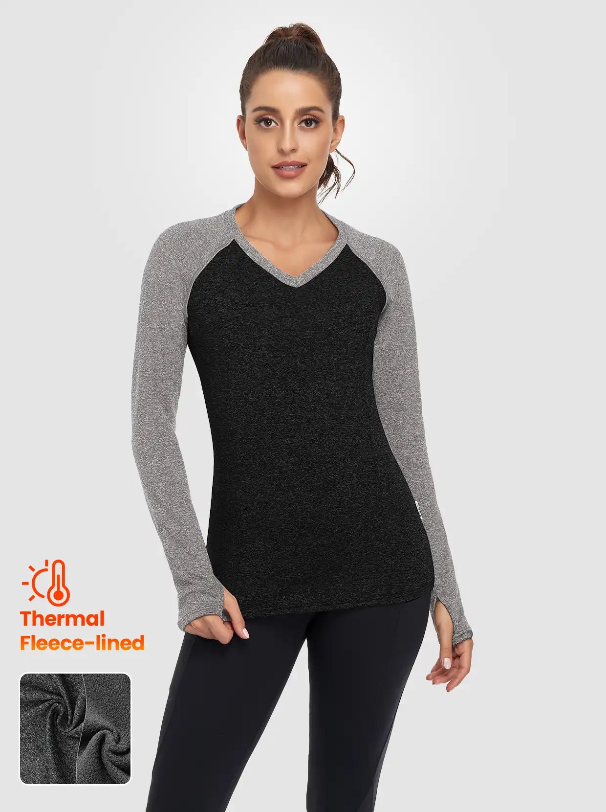 Women's V-neck Long-sleeve Fleece Top with Thumbholes