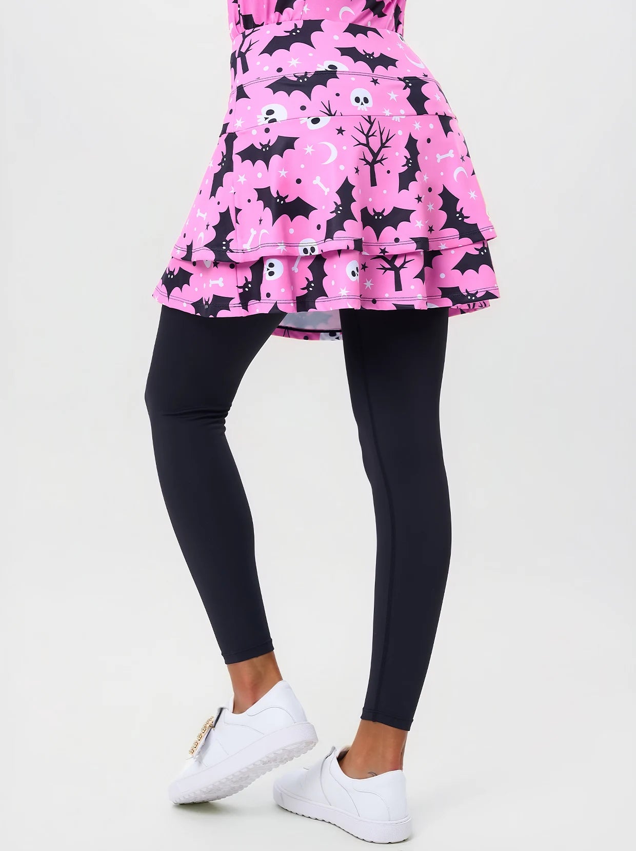 Halloween Pink Bats Ruffled Athletic Skirted Leggings