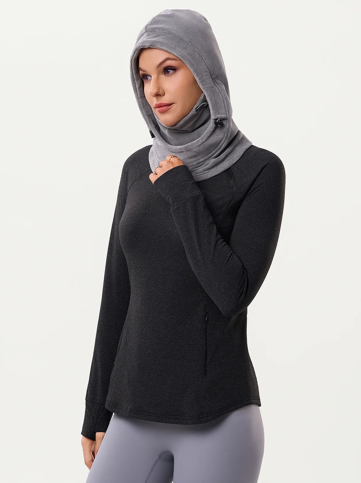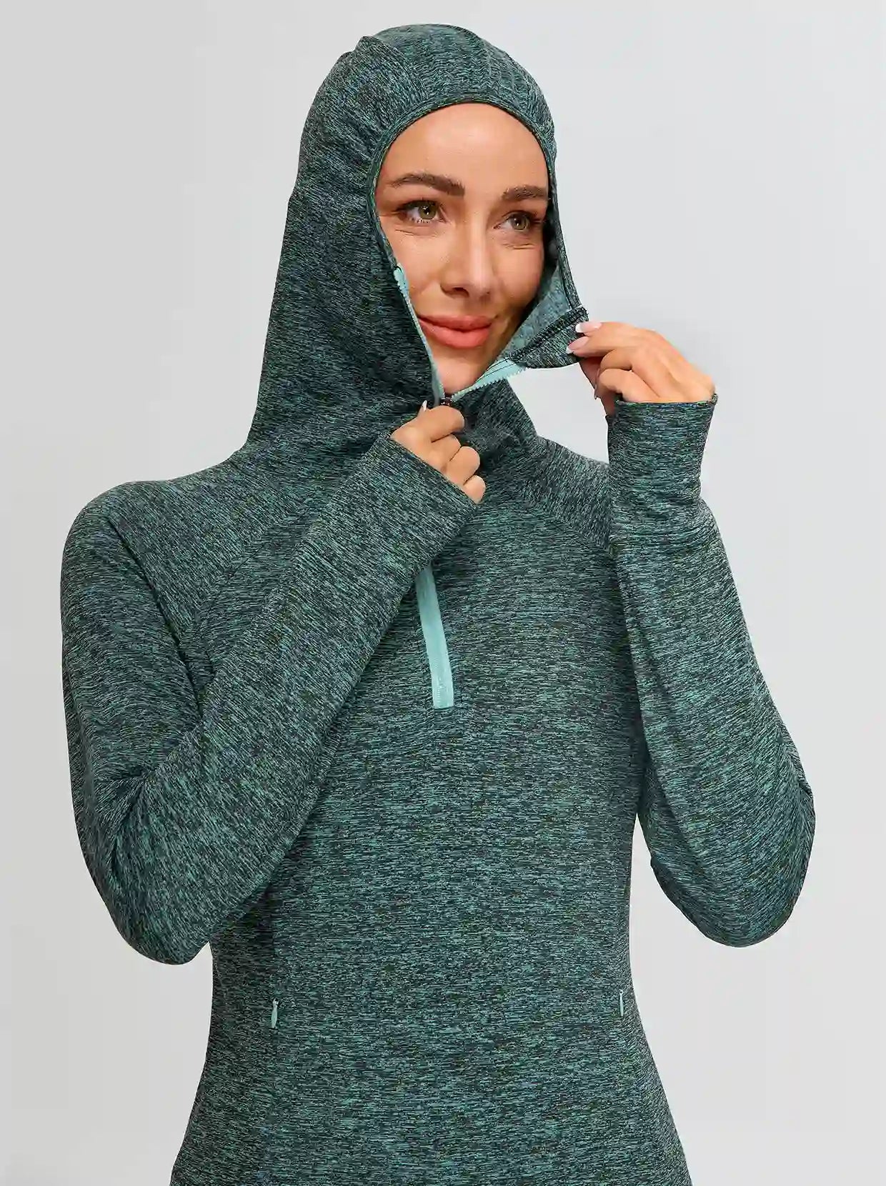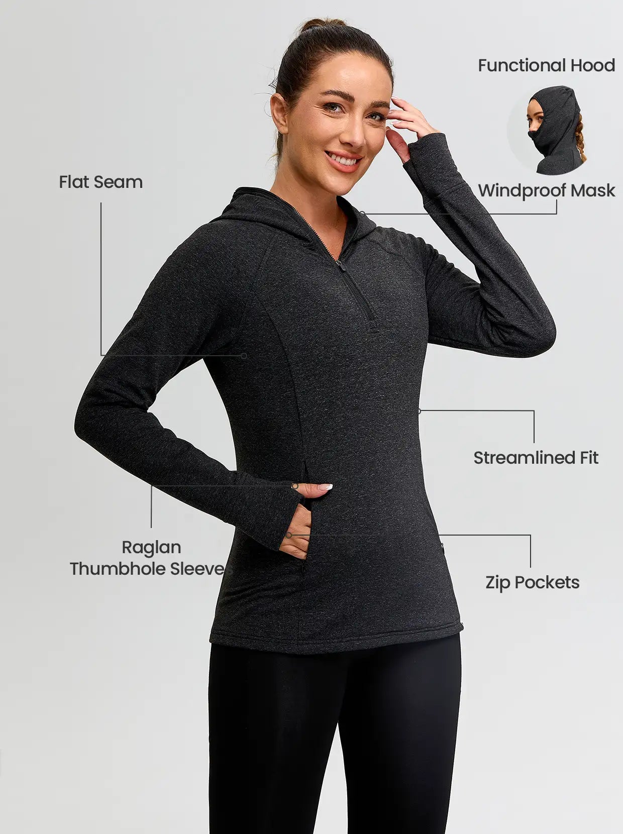 Half-zip Hoodies Long-sleeve Thermal Top for Women