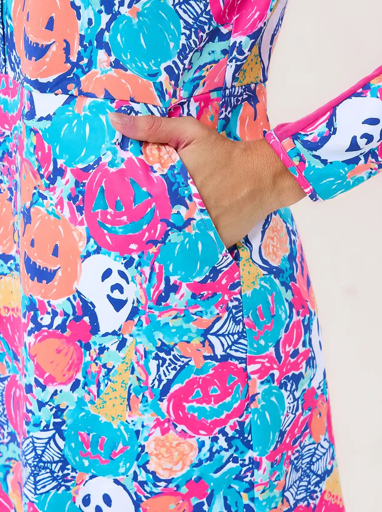 Halloween 34" Colorful Pumpkin Breathable Long-sleeve Polo Dress with Shorts