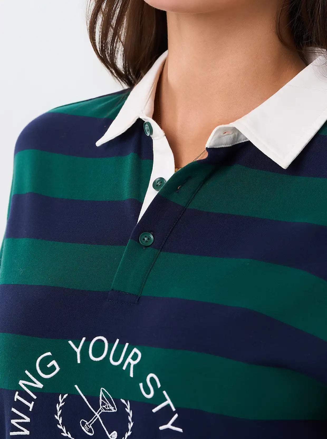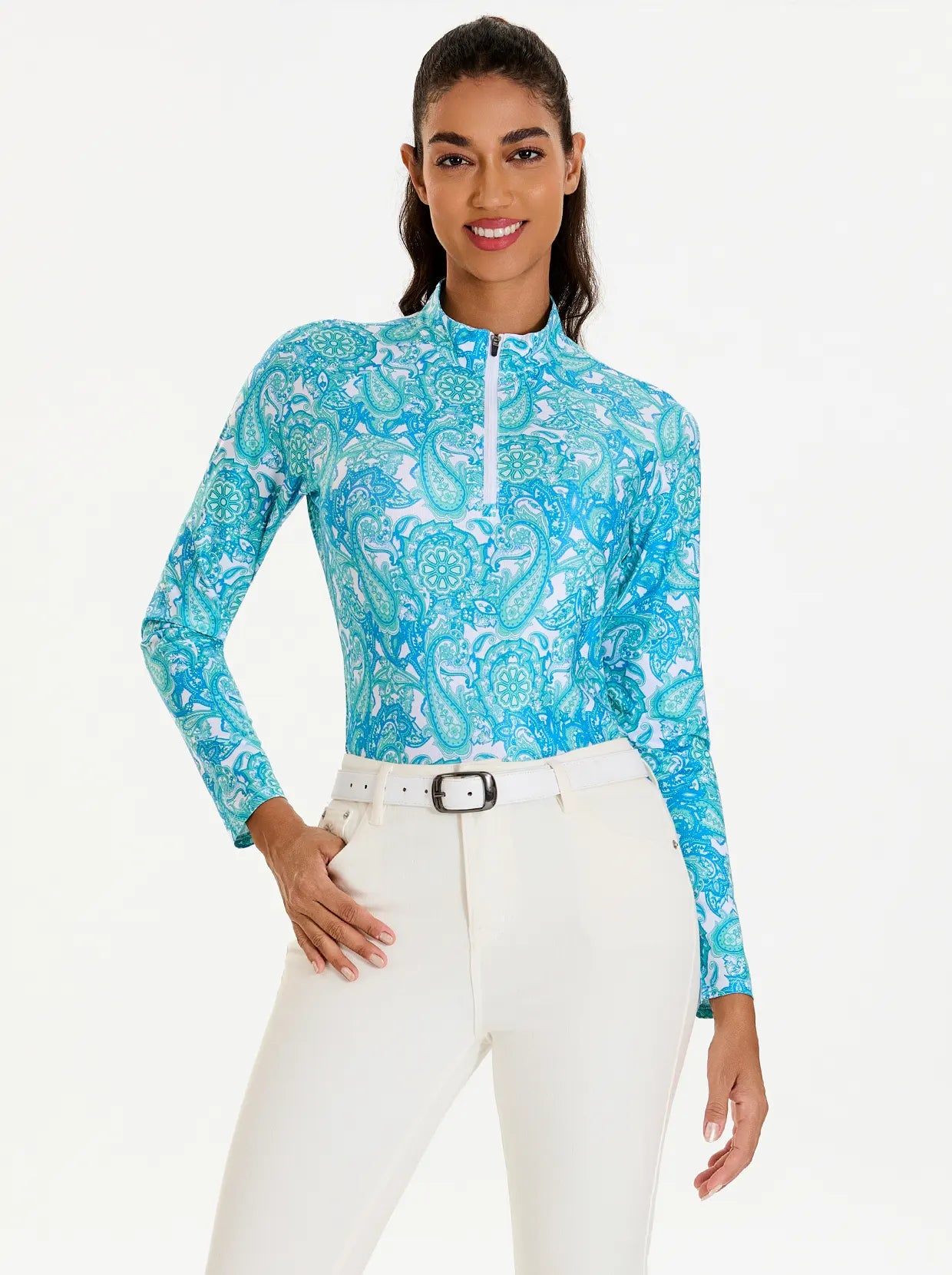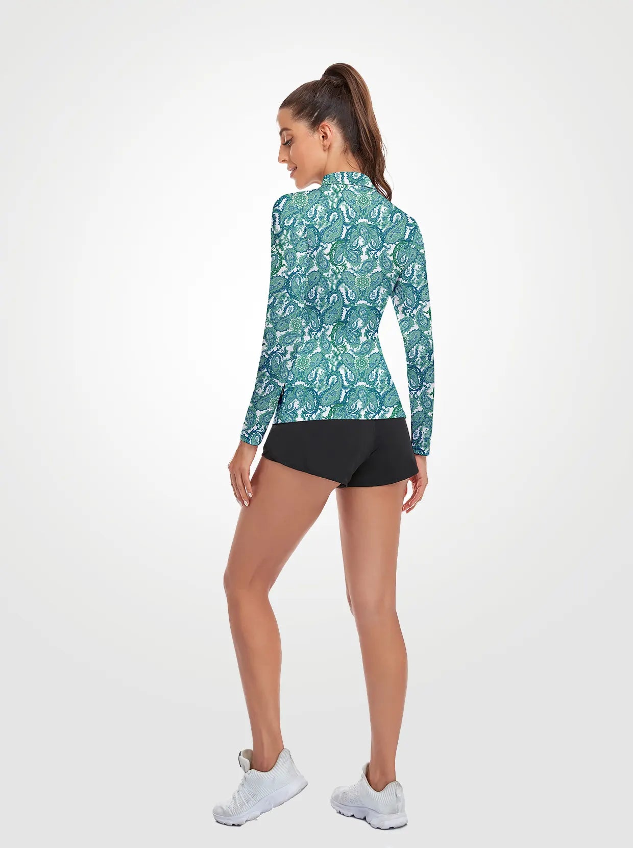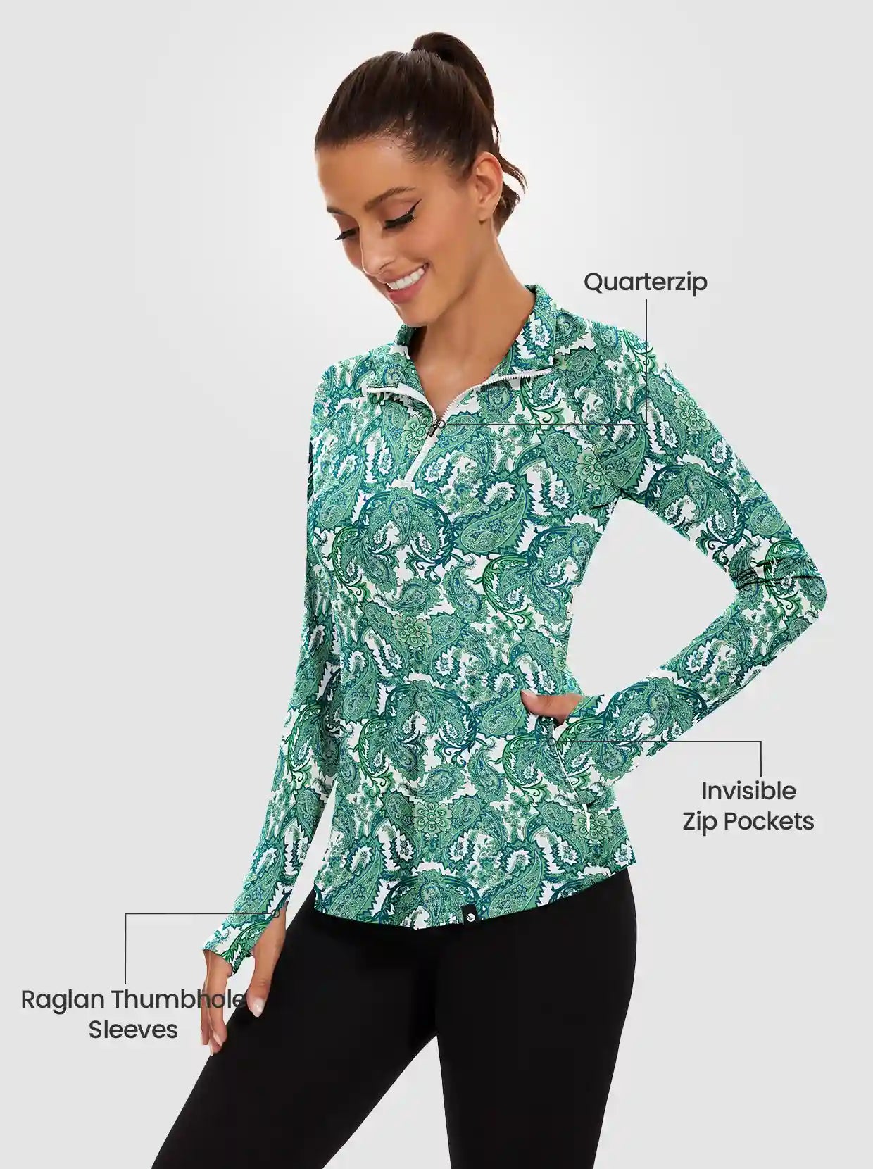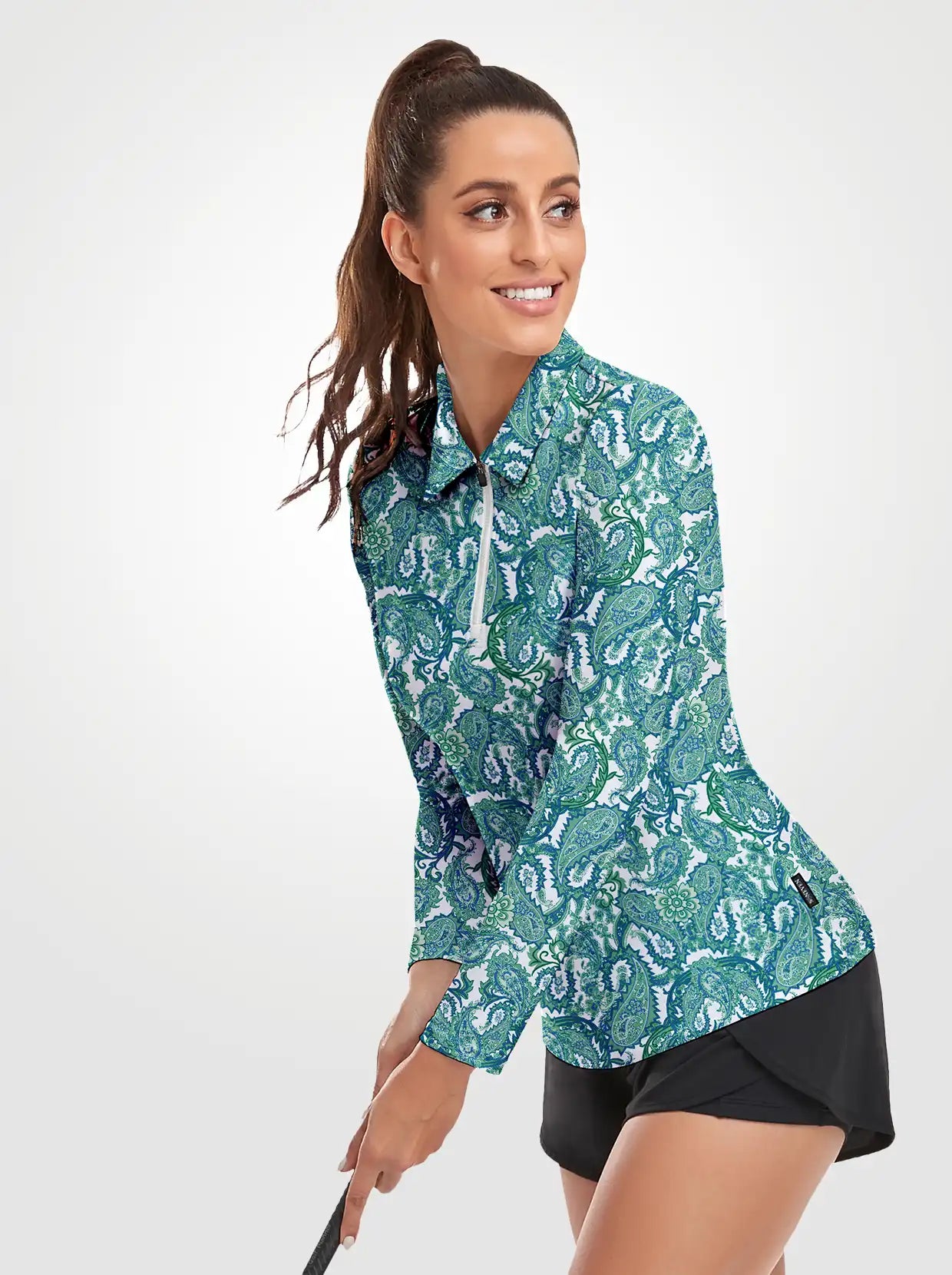 Green Shamrock Quarter-zip Long-sleeve Polo Shirt for Ladies