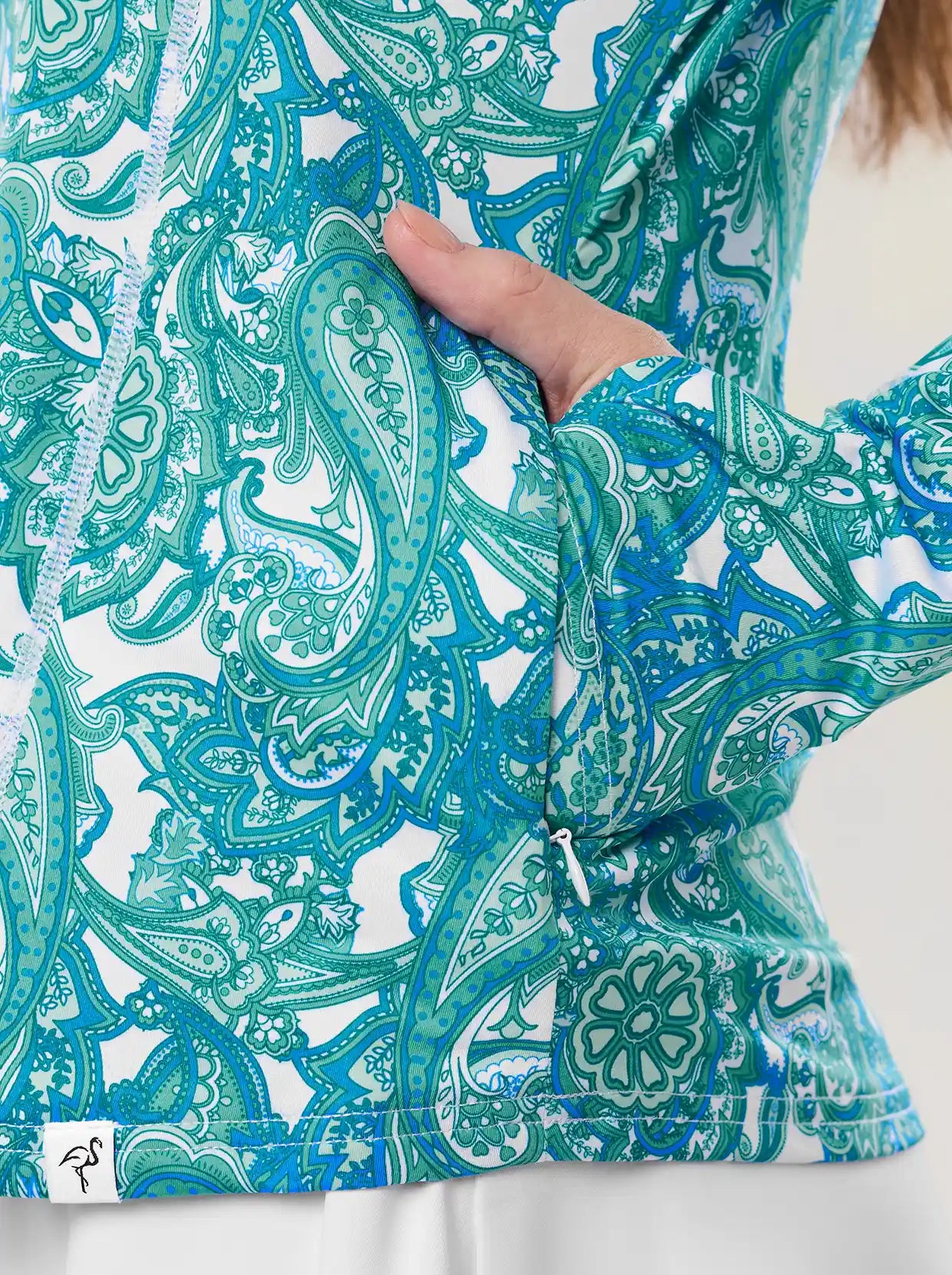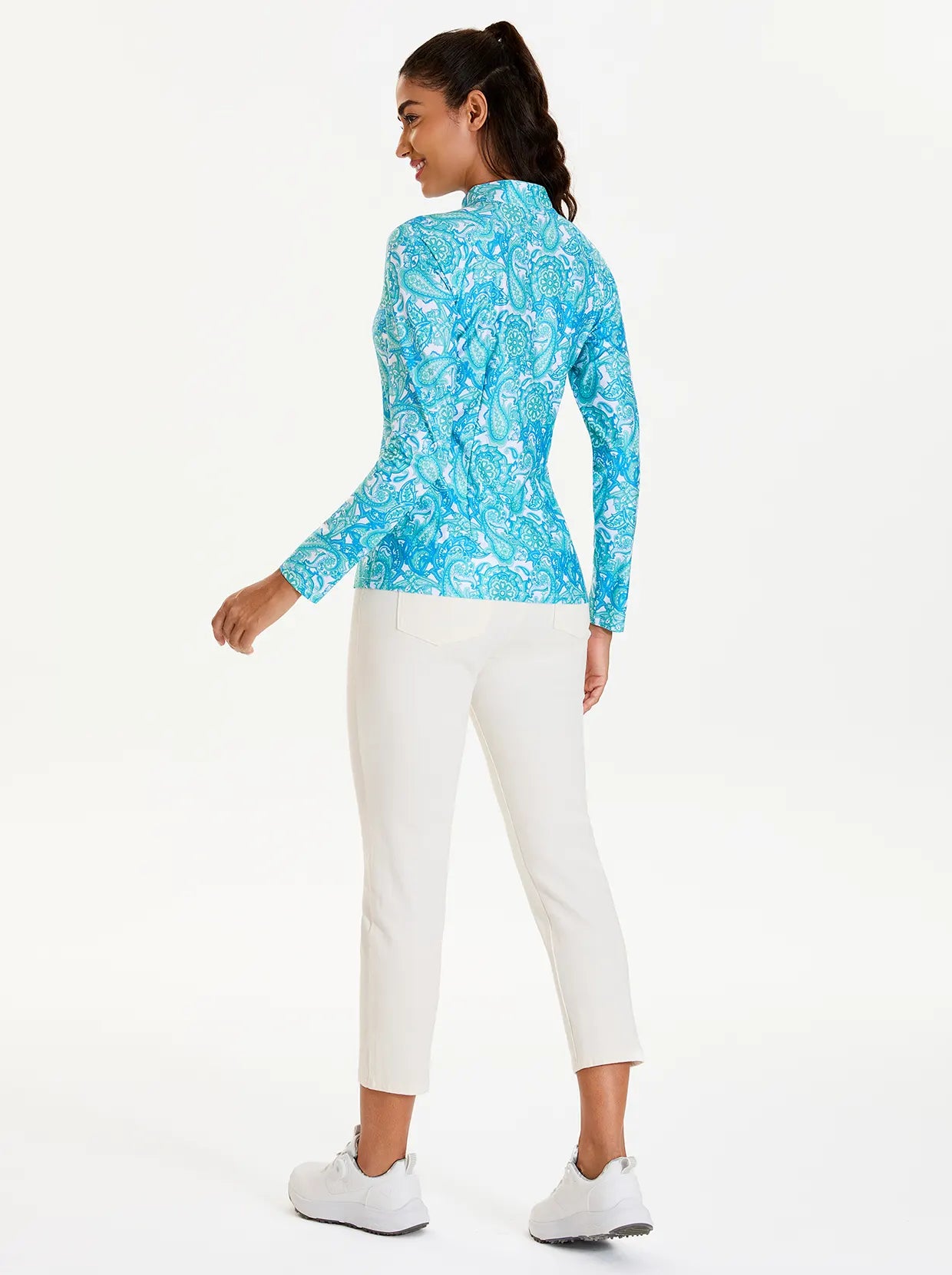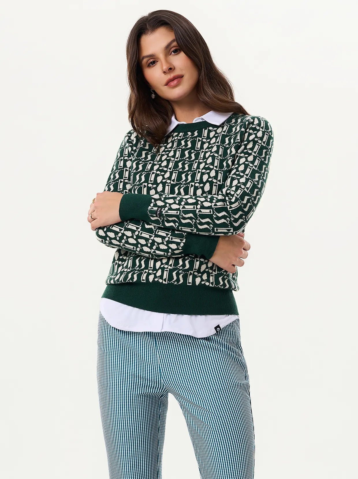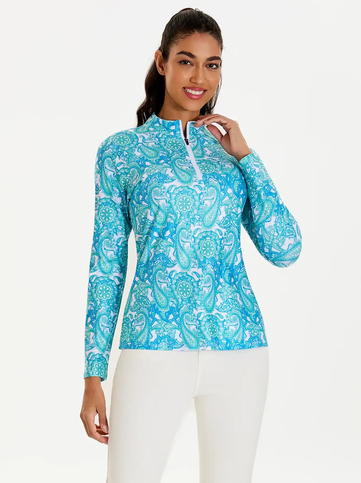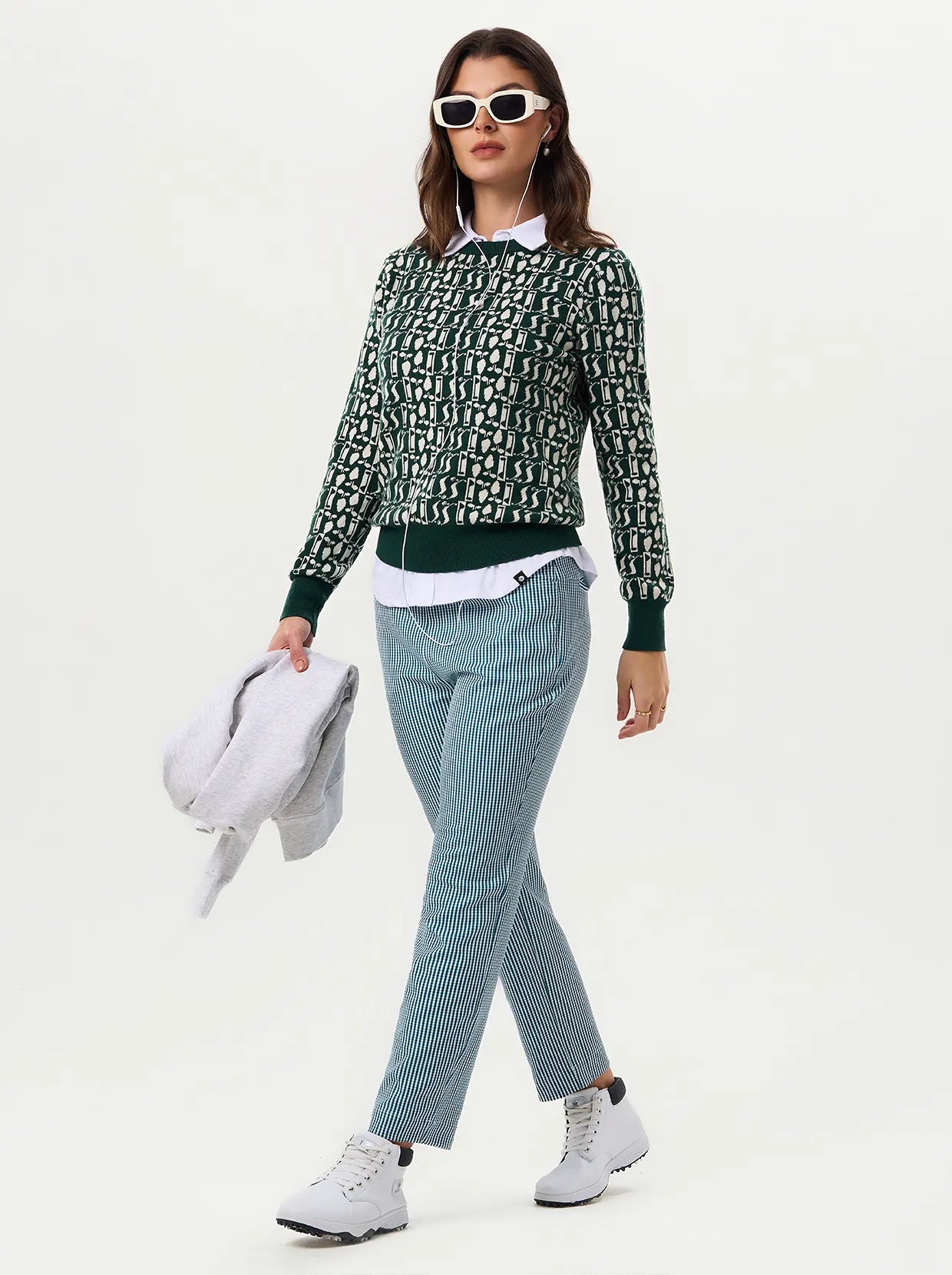 Green Shamrock Quarter-zip Long-sleeve Polo Shirt for Ladies