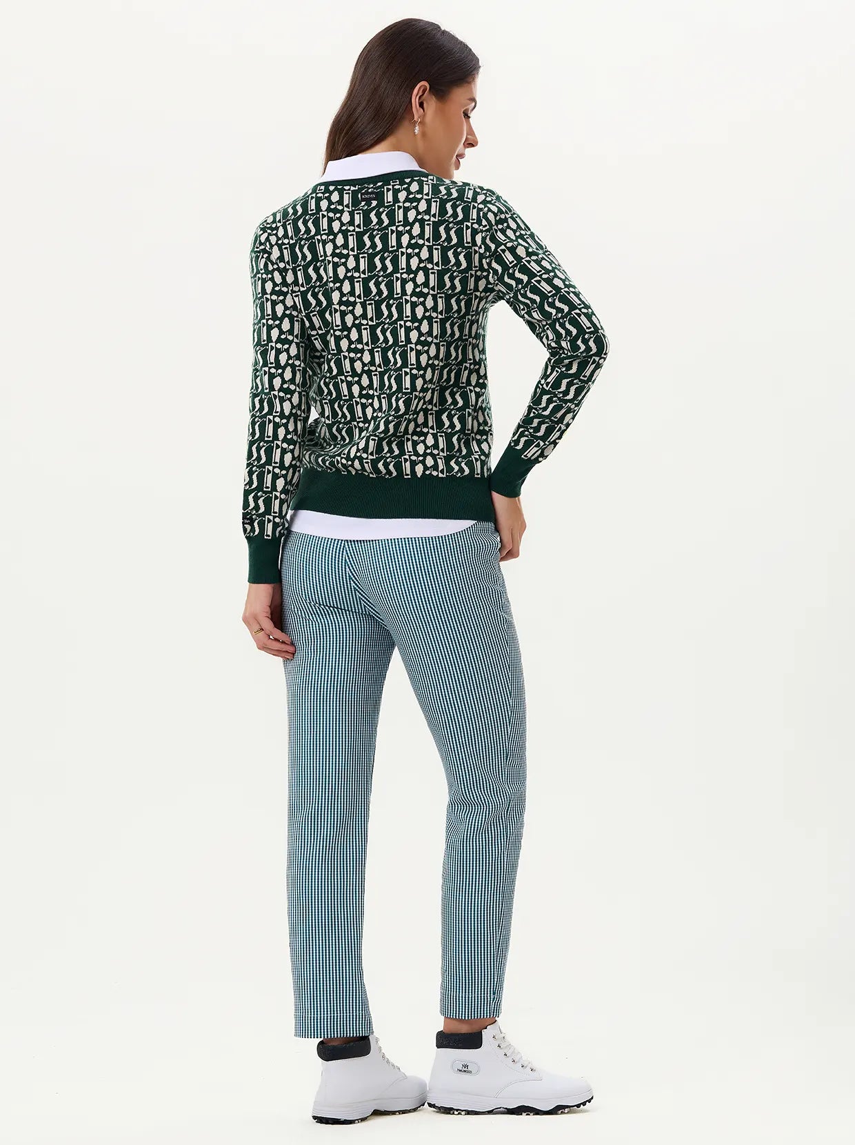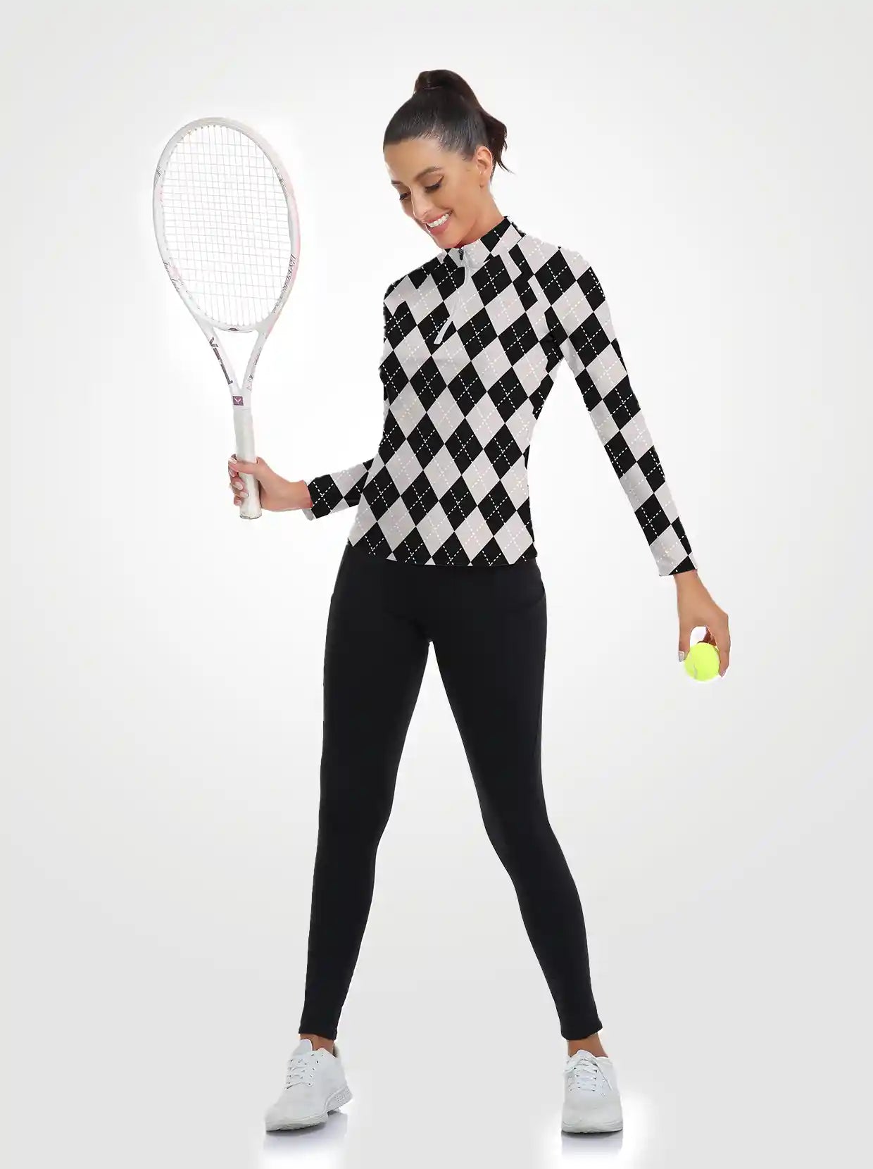 Grey and Black Checkerboard Long-sleeve Polofor Ladies