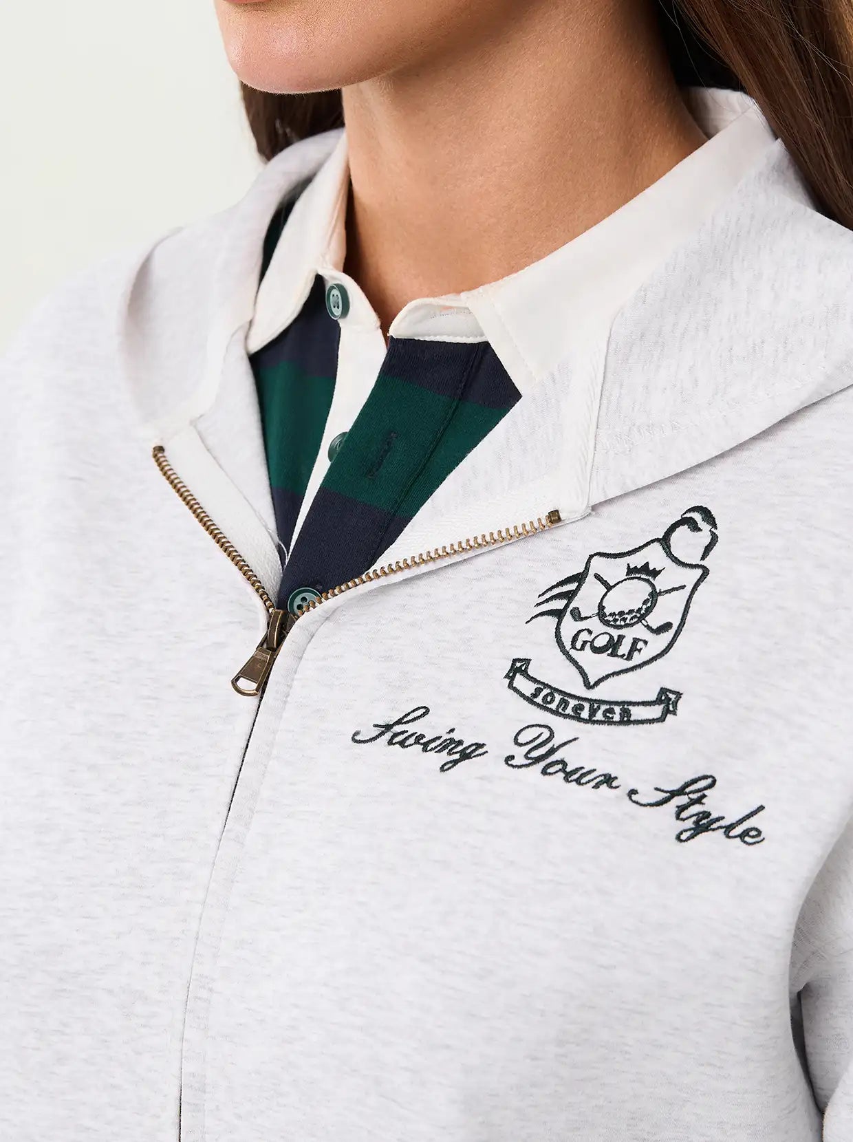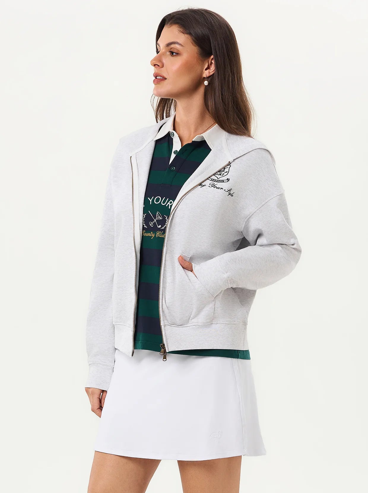 Grey Hooded Two-way Zipper Golf Jacket For Women