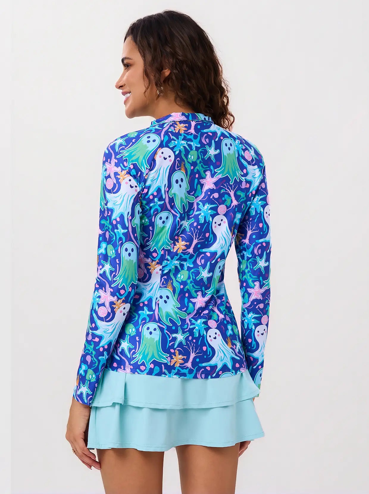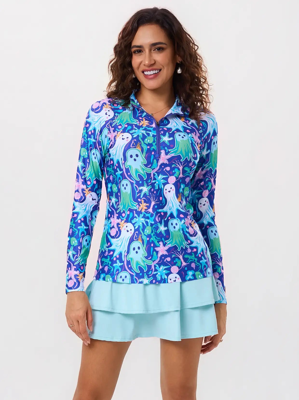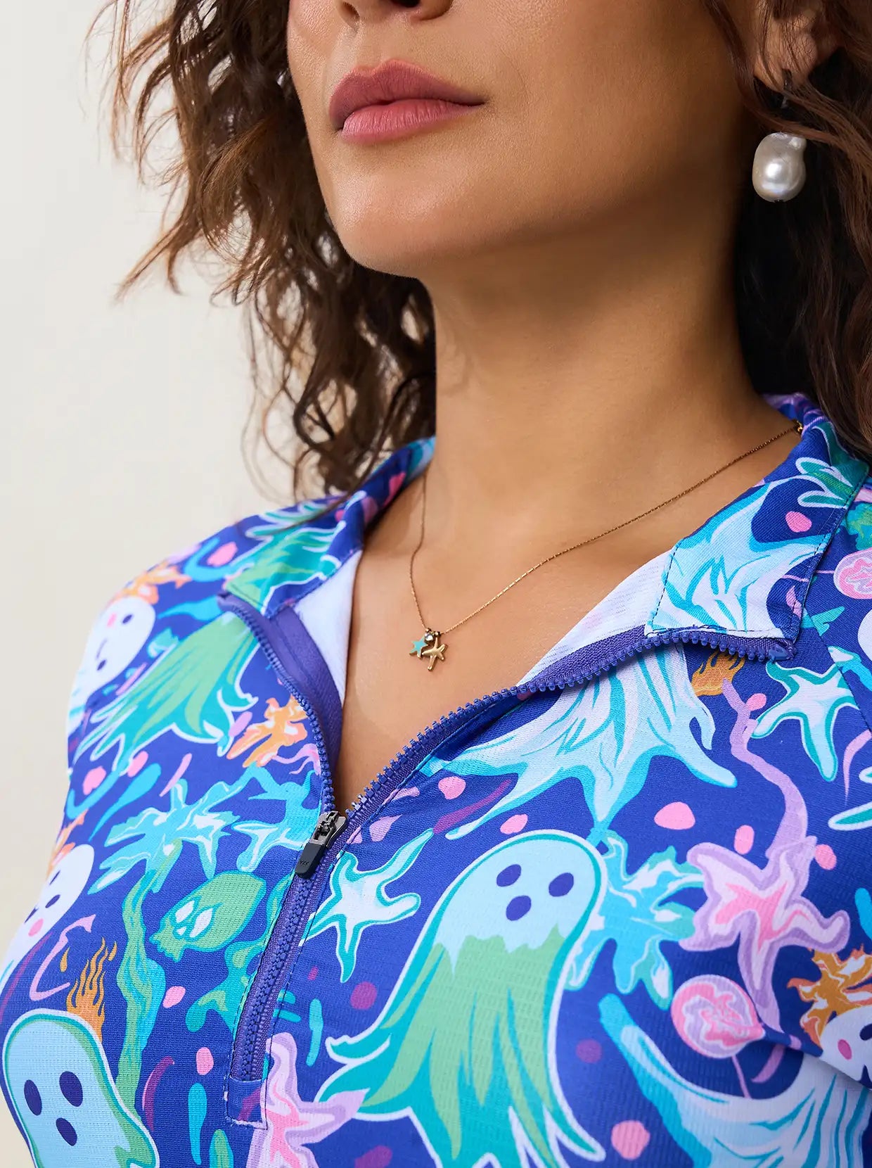 Halloween Ghostly Garden Quarter-zip Long-sleeve Polo Shirt