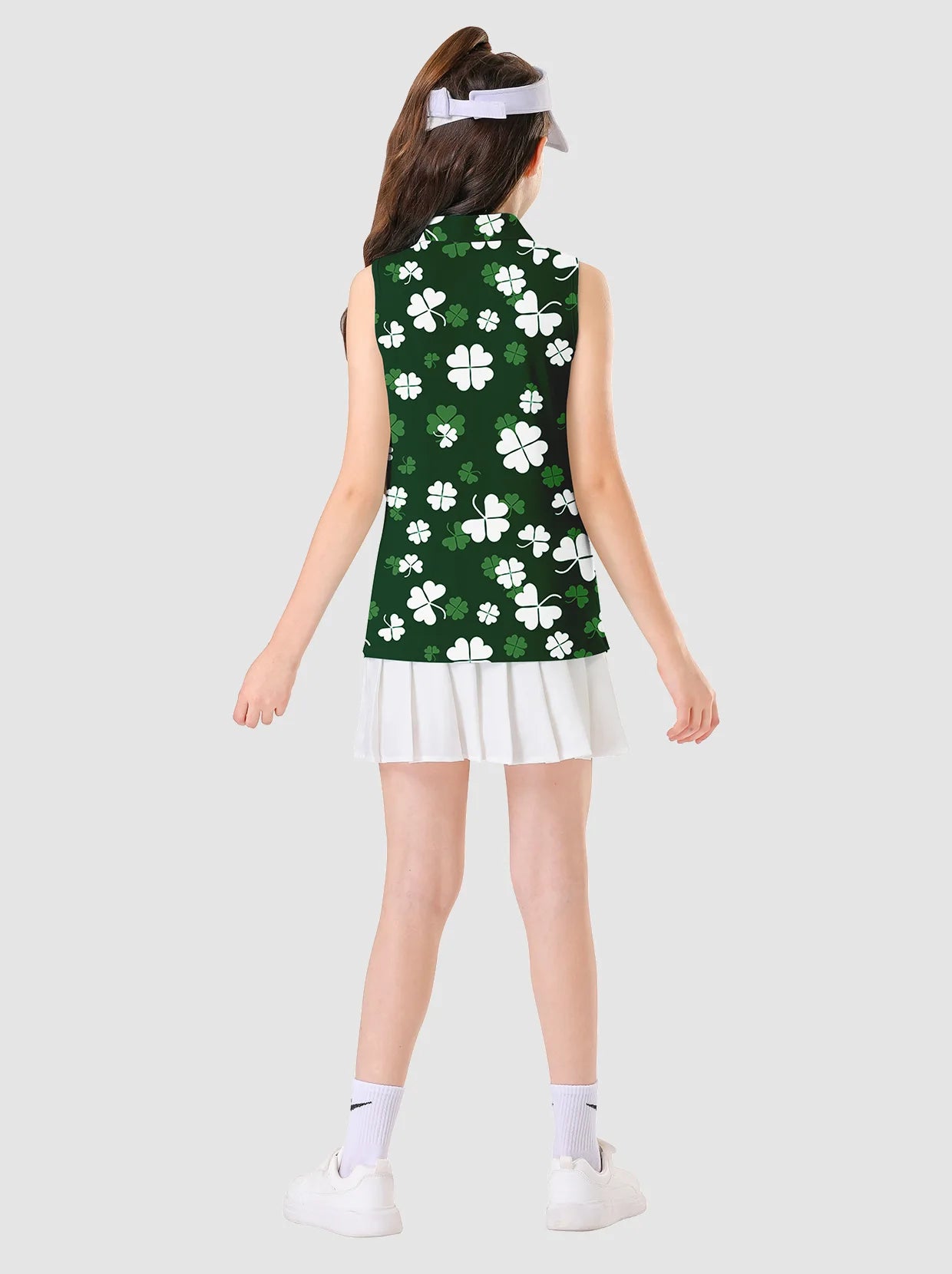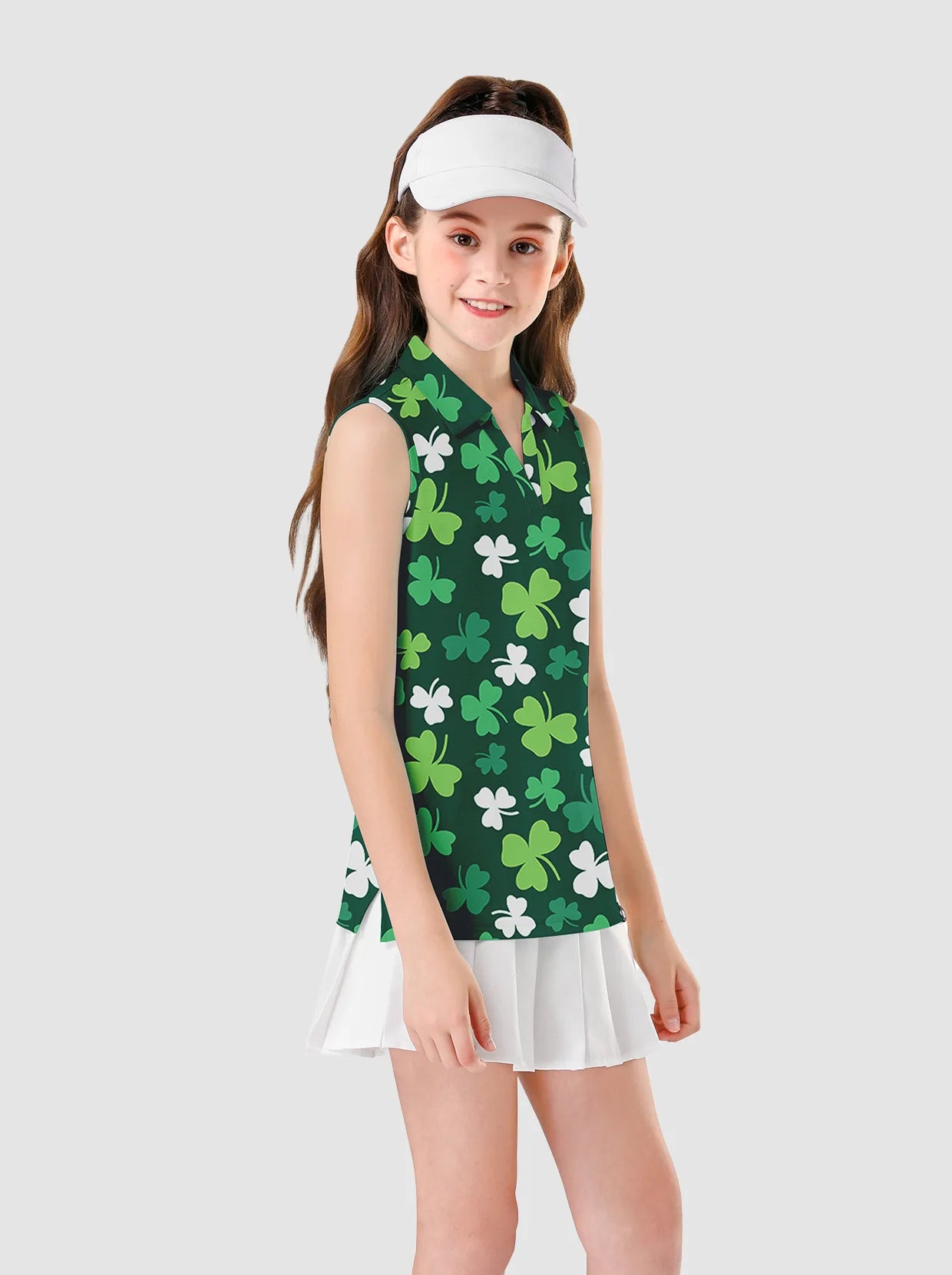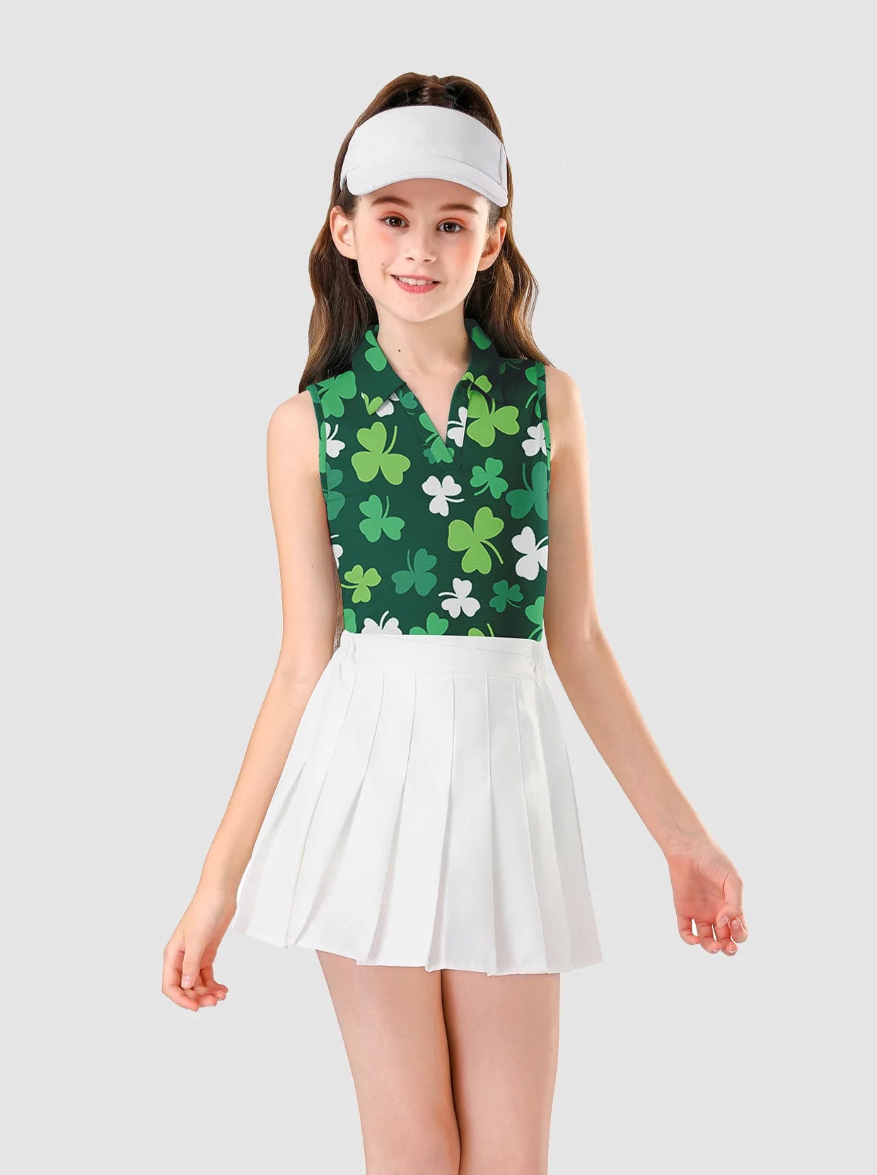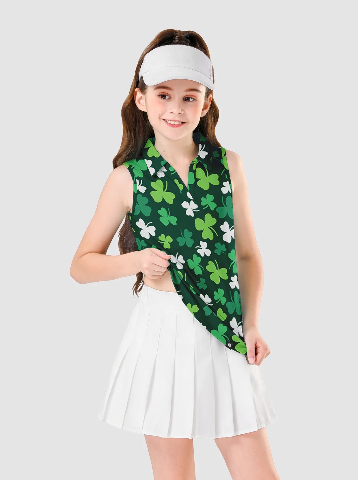 Green Shamrock V-neck Sleeveless Polo Top for Girls