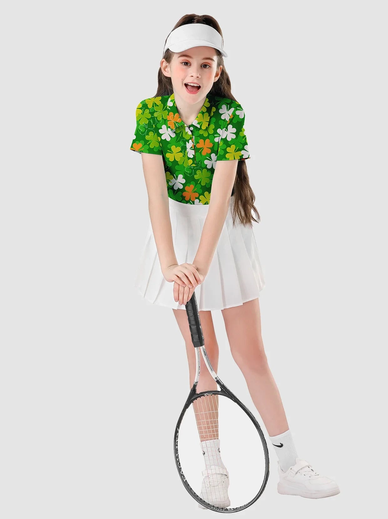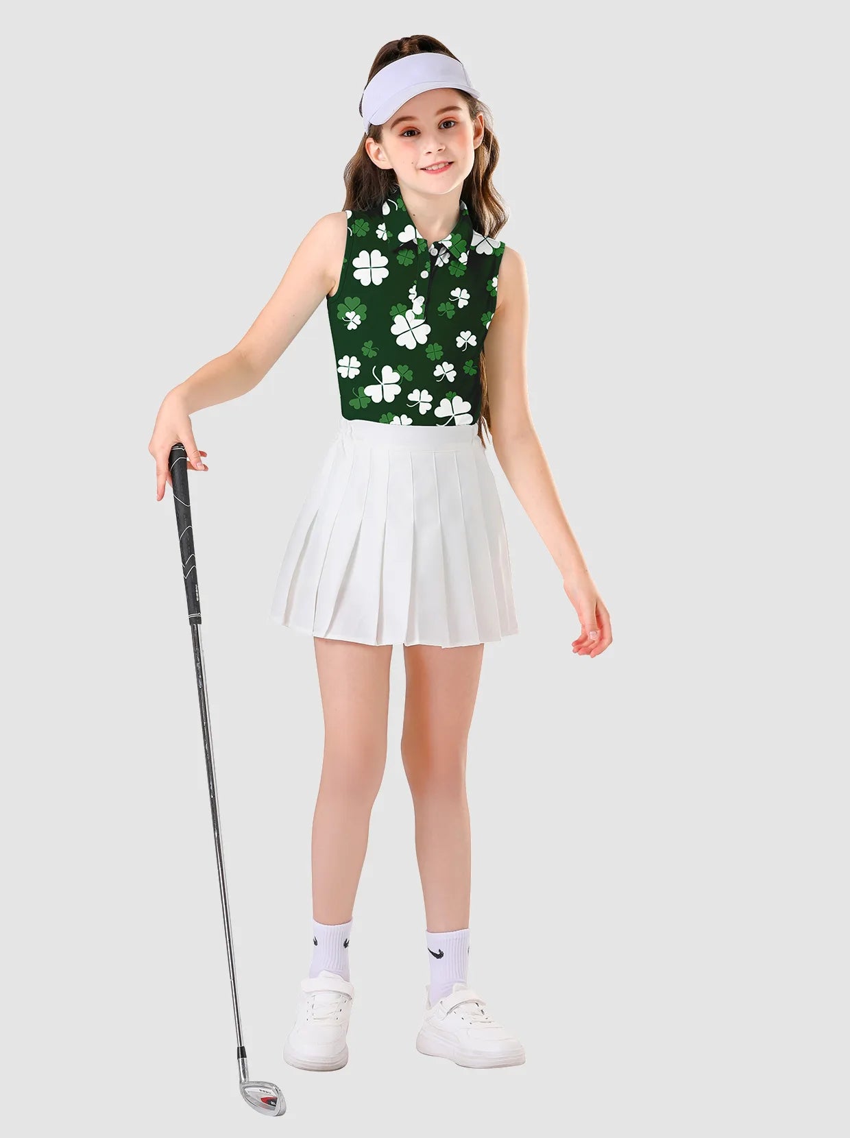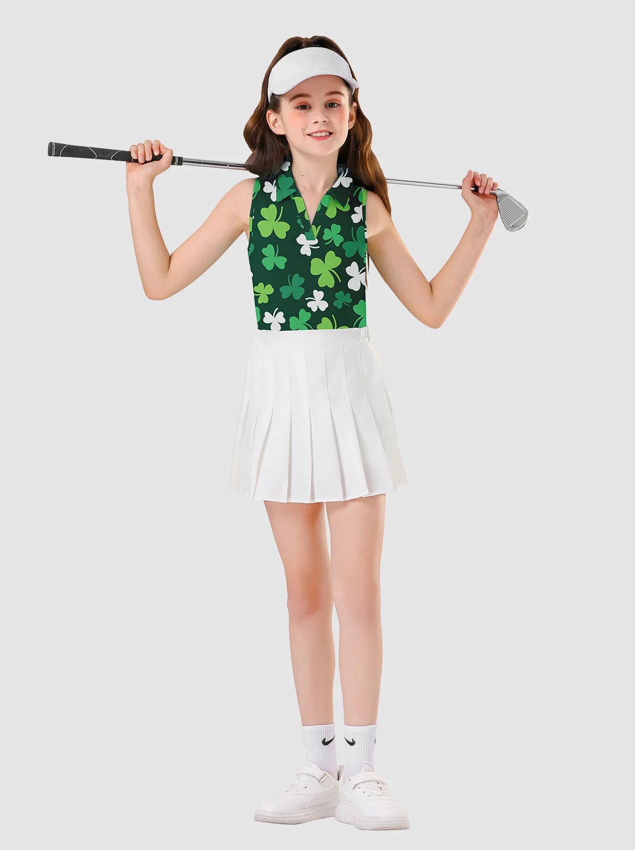Green Shamrock V-neck Sleeveless Polo Top for Girls