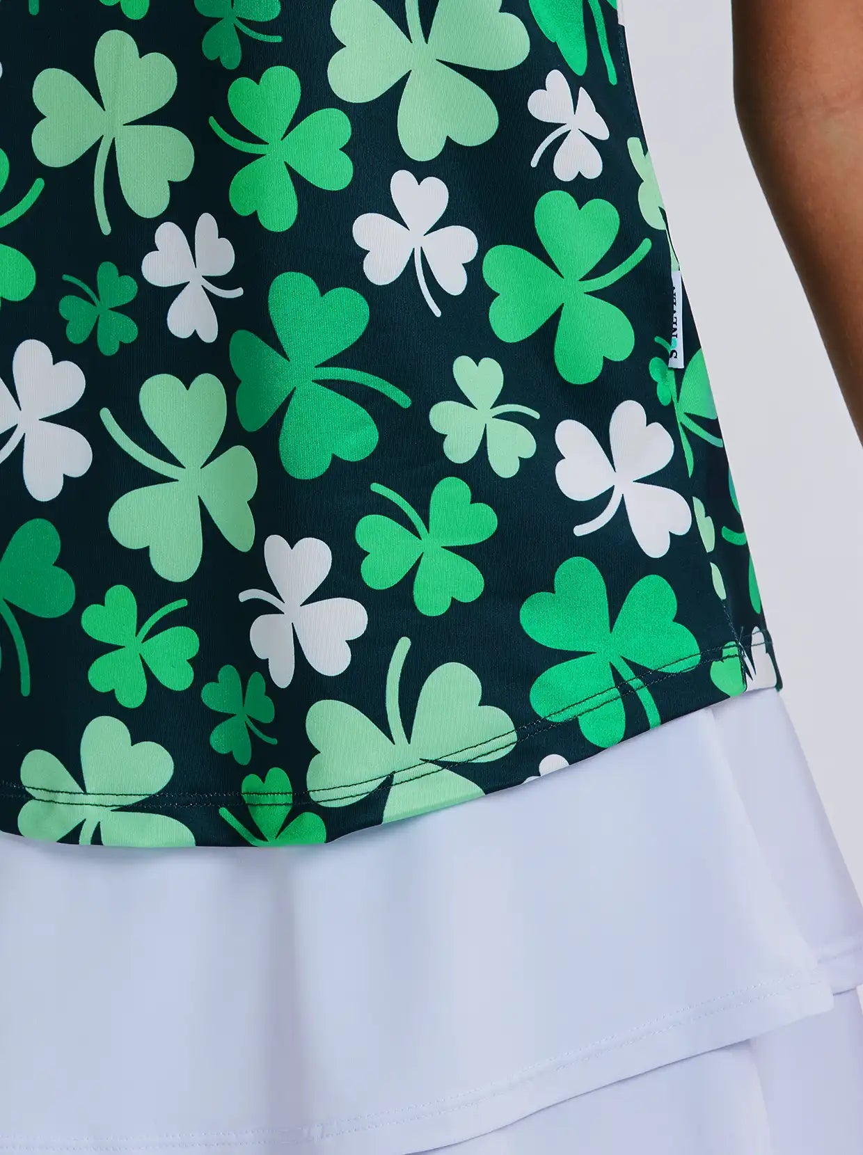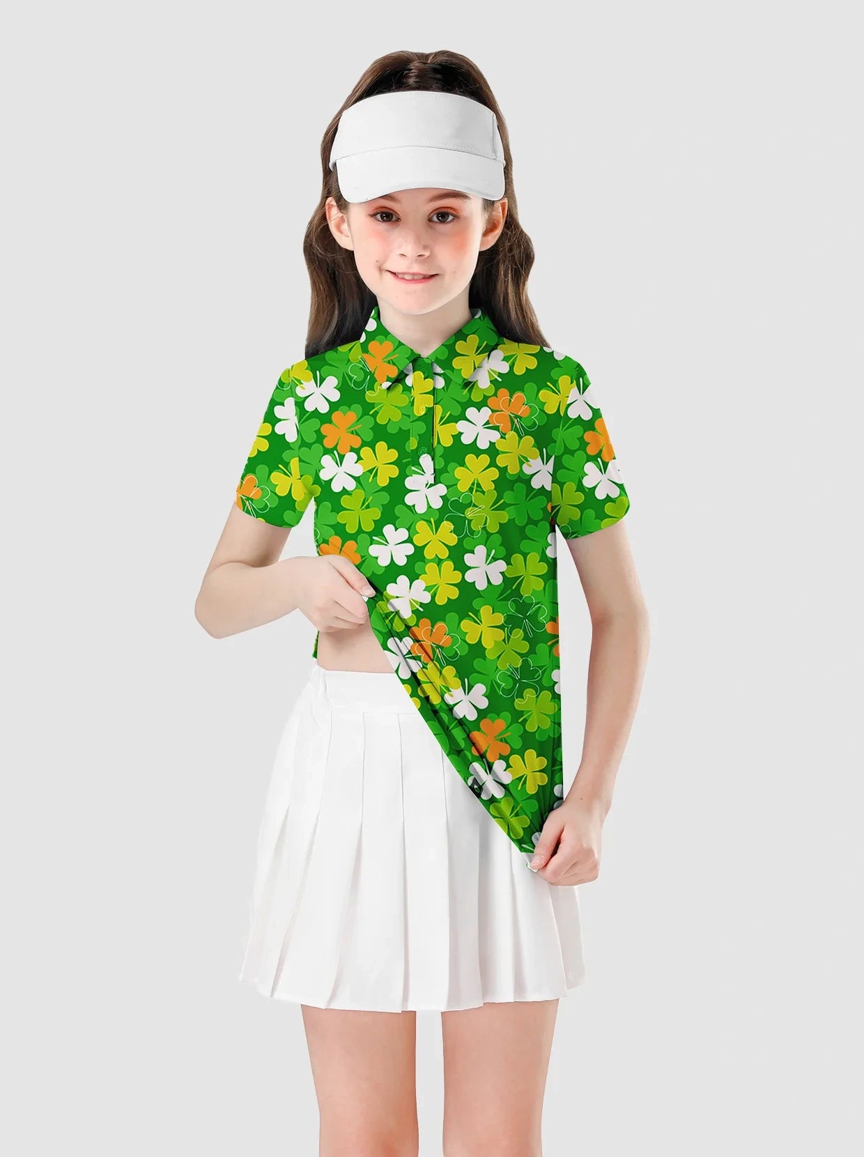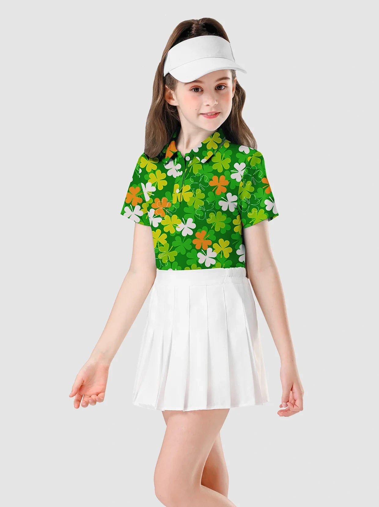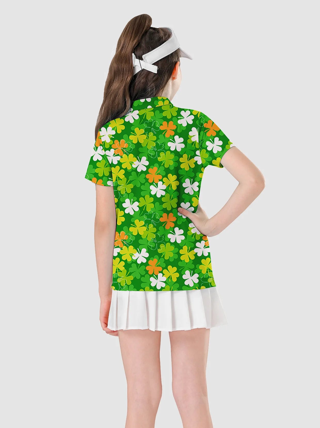 Green Shamrock V-neck Sleeveless Polo Top for Girls