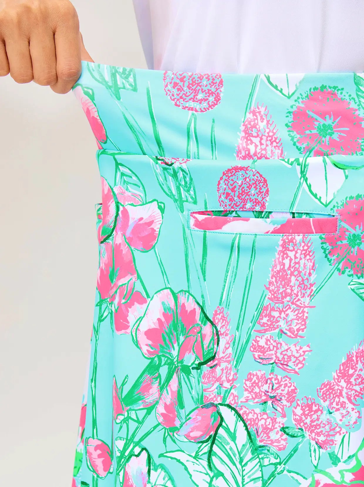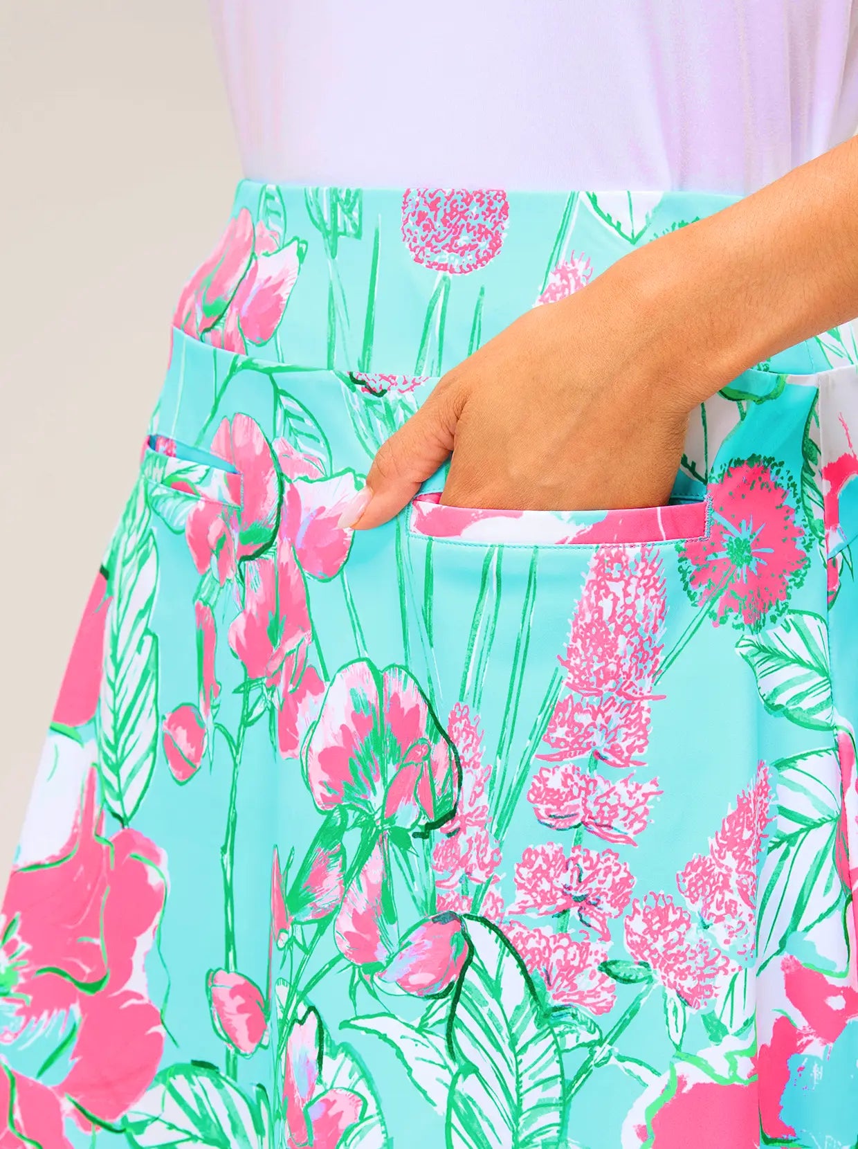 16.5" Pink Floral Pleated Active Skorts with Shorts and Pockets