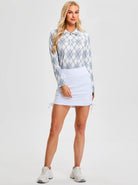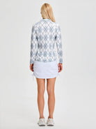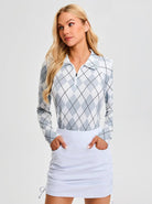 Grey Argyle Quarterzip Long Sleeve Polo Shirt for Women