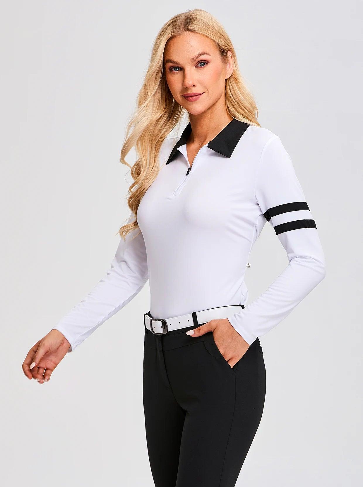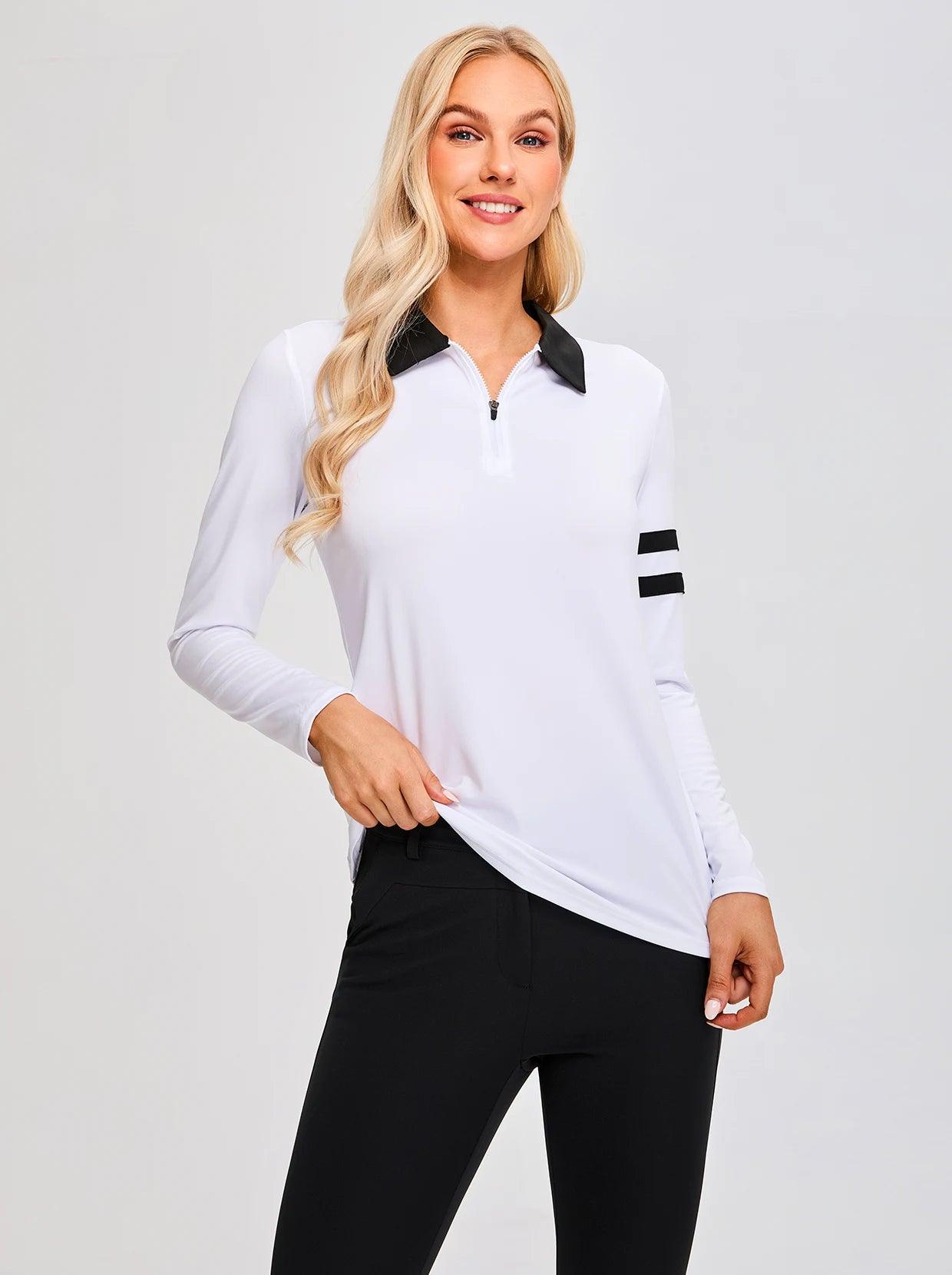 White Quarter-Zip Long-Sleeve Golf Polo Shirt for Ladies