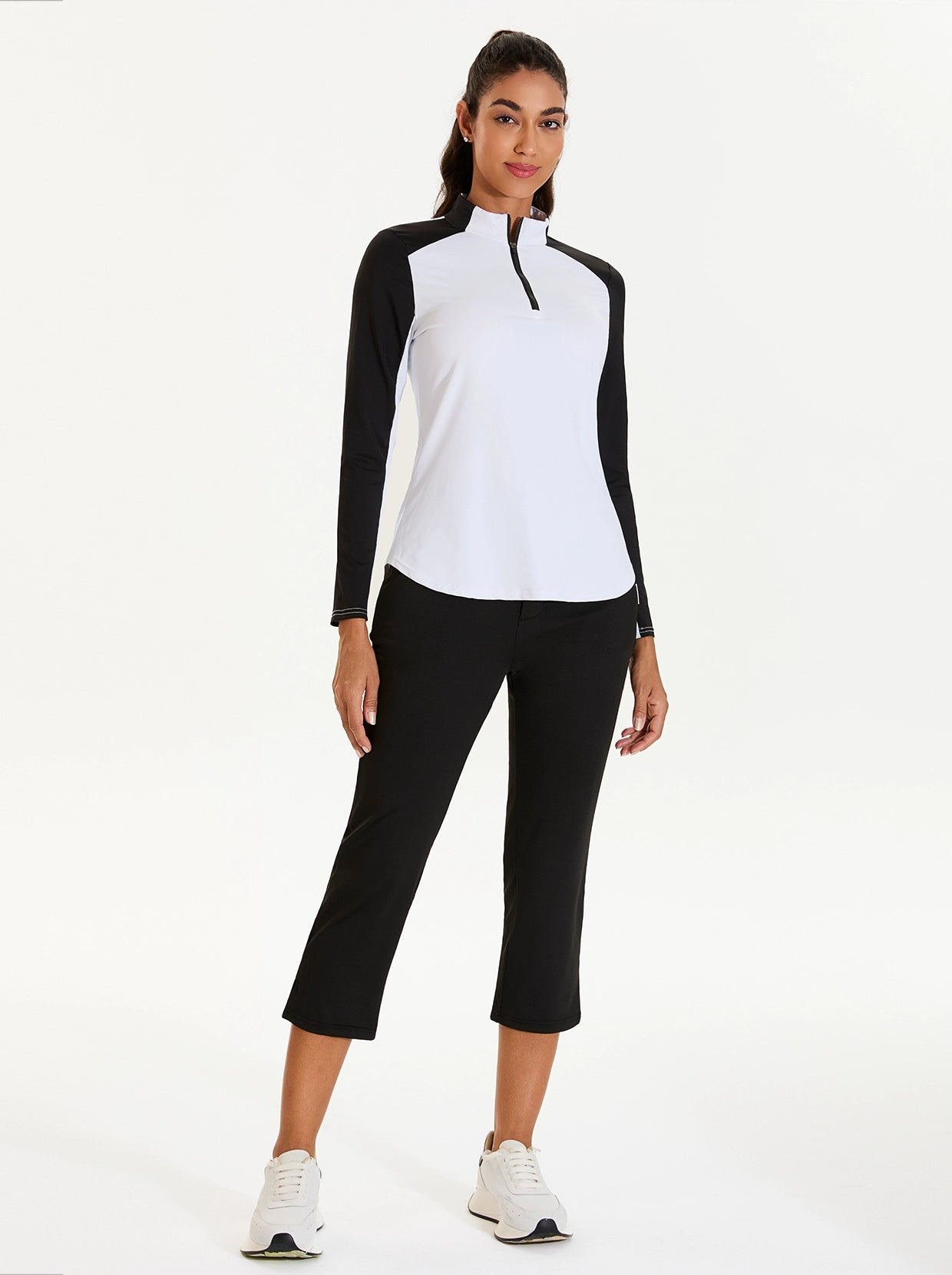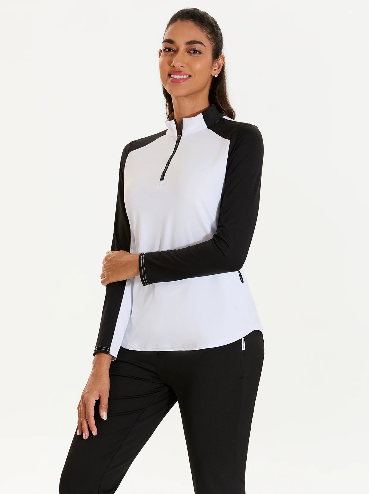 Elevate your golf game with our classic White Stand-Collar Polo Shirt. Crafted from soft, quick-dry fabric, this shirt keeps you cool and comfortable. The stretch material offers unrestricted movement and a customized fit, while the quarter-zip is convenient for adjusting the neckline. The timeless combination of black and white makes this polo shirt a stylish choice for the golf course.
