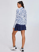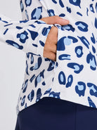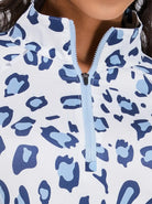 Women's Blue Leopard Quarter-zip Long-sleeve Shirt with Pockets